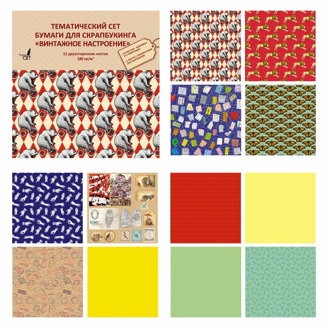 Тематическая двухсторонняя бумага для скрапбукинга "Винтажное настроение" (12 листов) (НБС12402) Канц-Эксмо