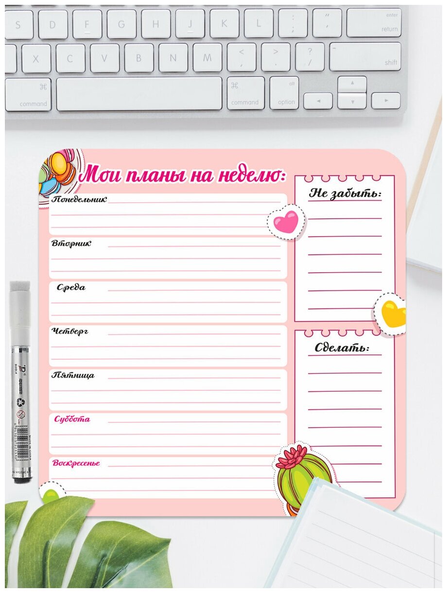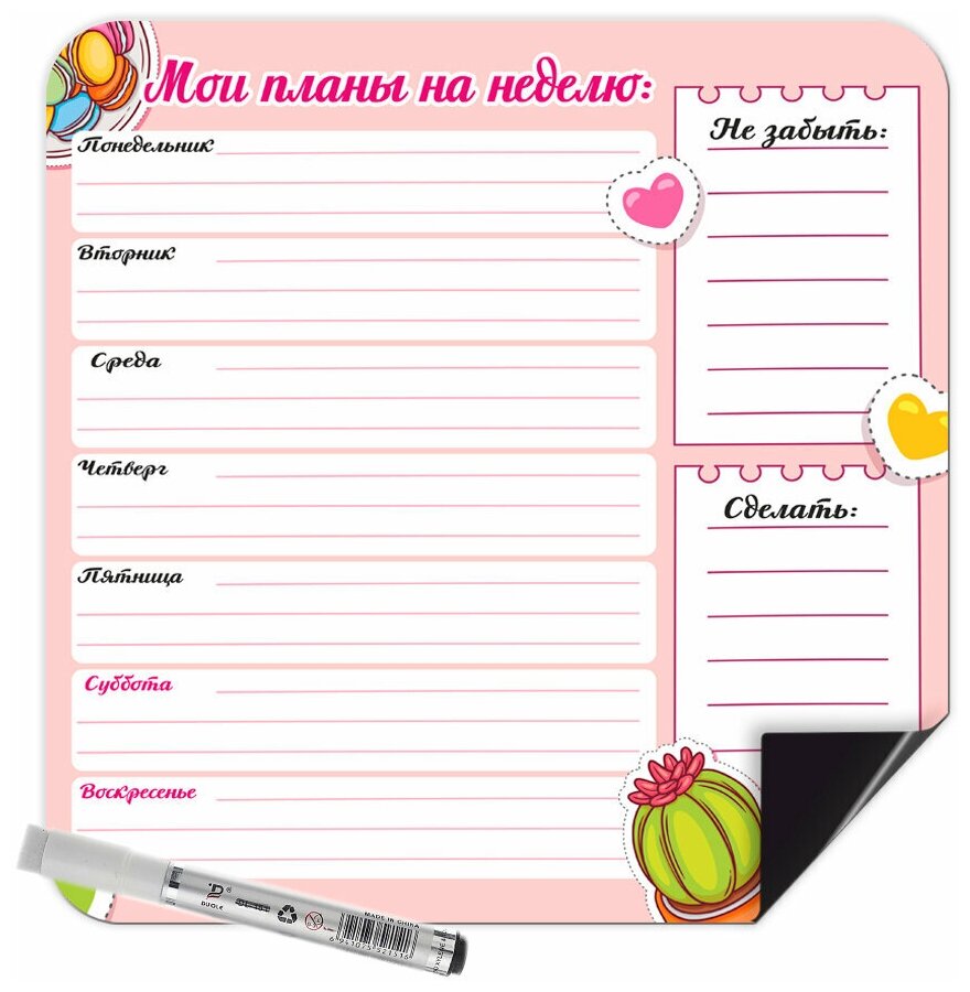 Плоский магнит- планер "Мои планы на неделю" розовый Символик