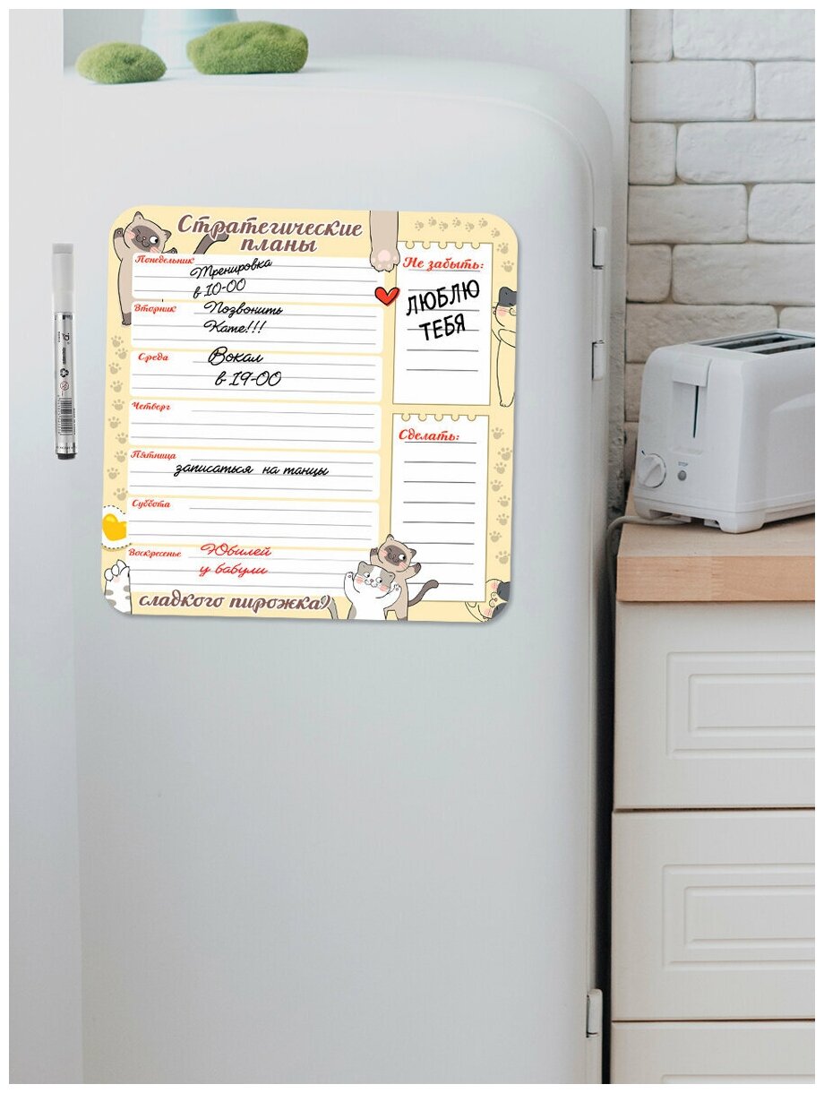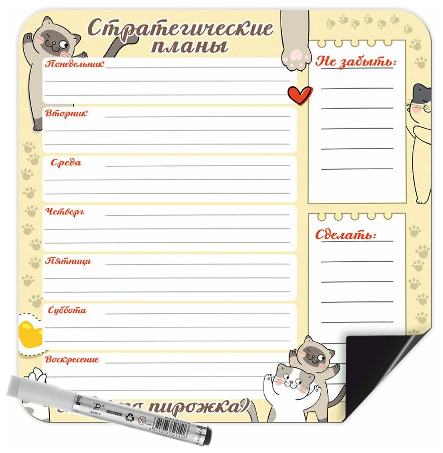 Плоский магнит- планер "Стратегические планы сладкого пирожка" с маркером Символик