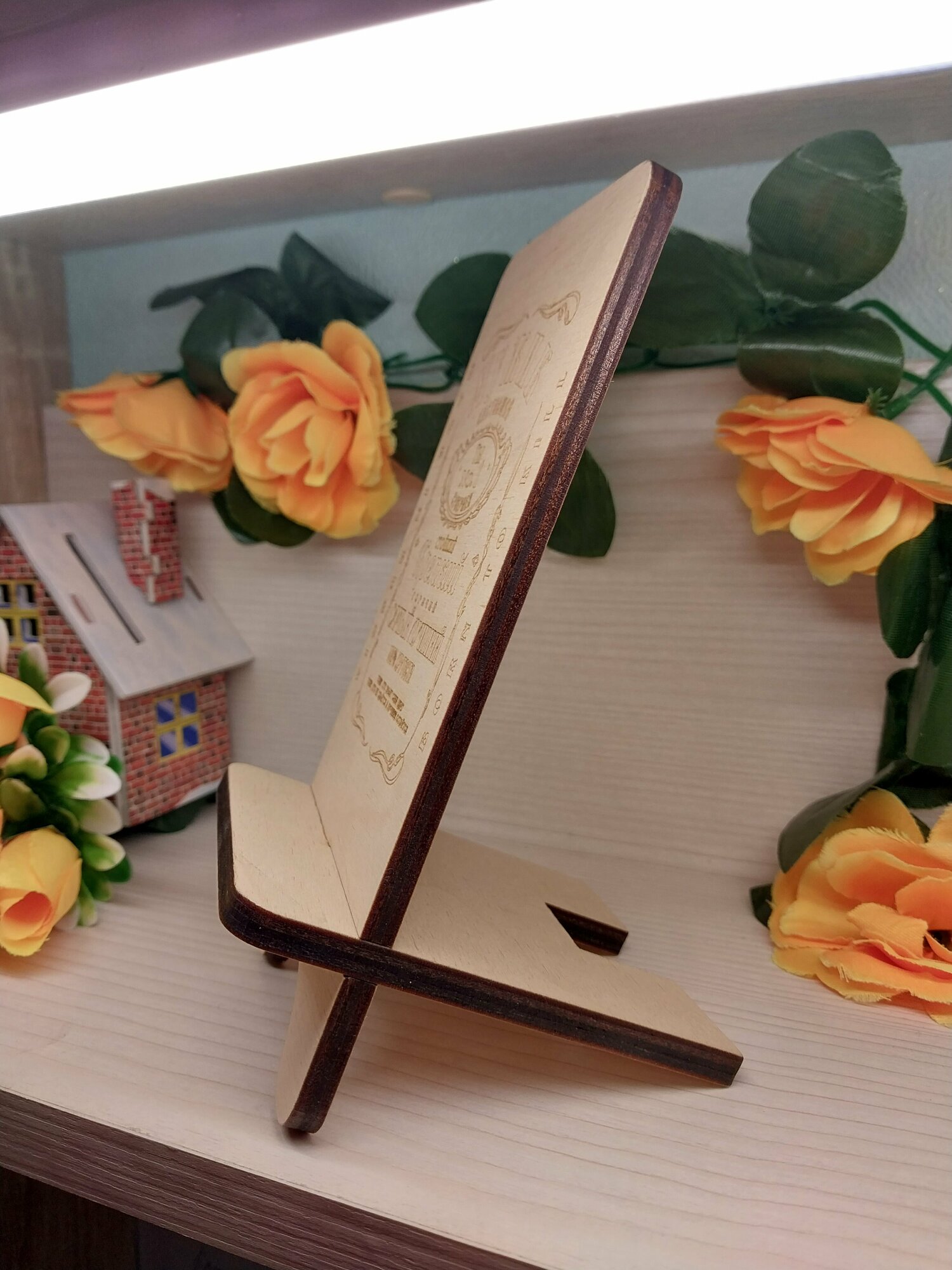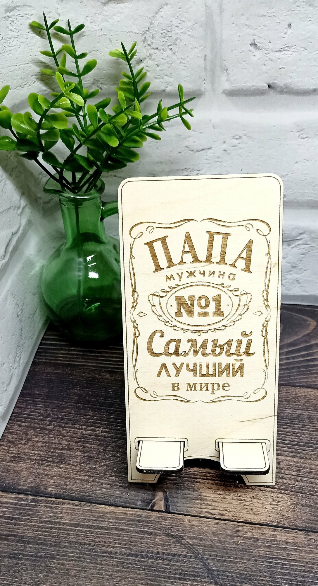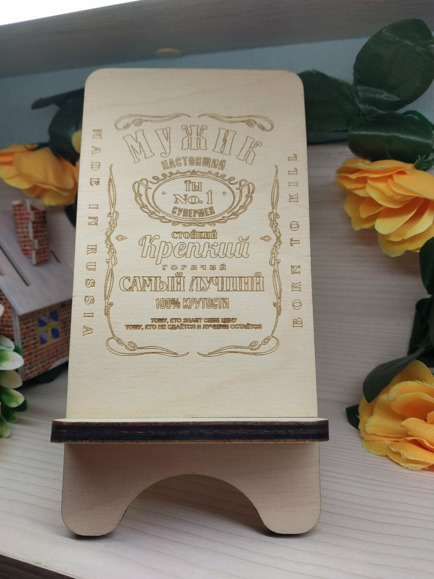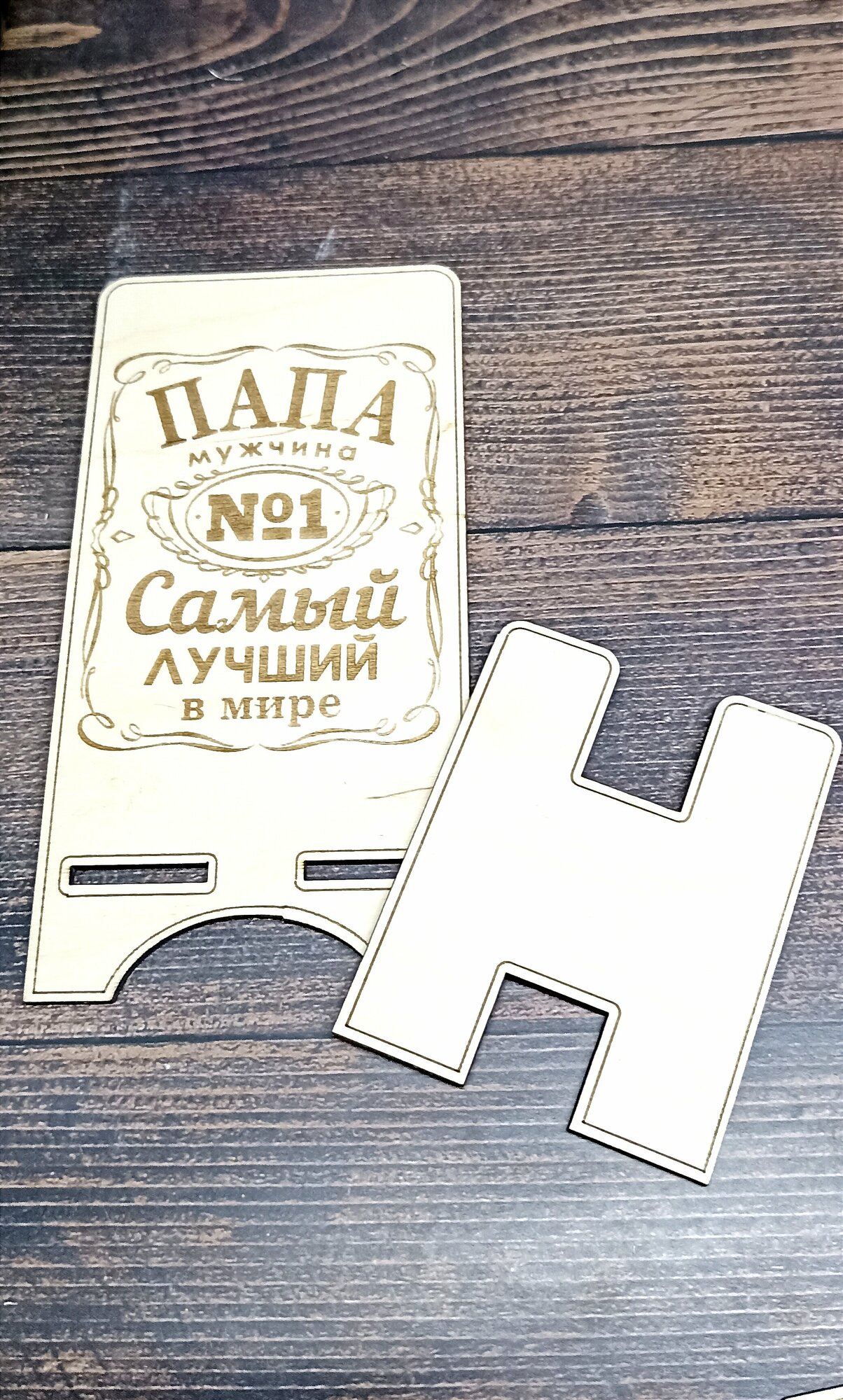 Наши позитивные подставки для телефона выполнены из дерева. Такая подставка собирается из двух деталей буквально за считанные секунды. Теперь телефон всегда будет у вас в поле зрения, а хорошее настроение, мы уверены, не покинет вас в течение всего рабочего дня!