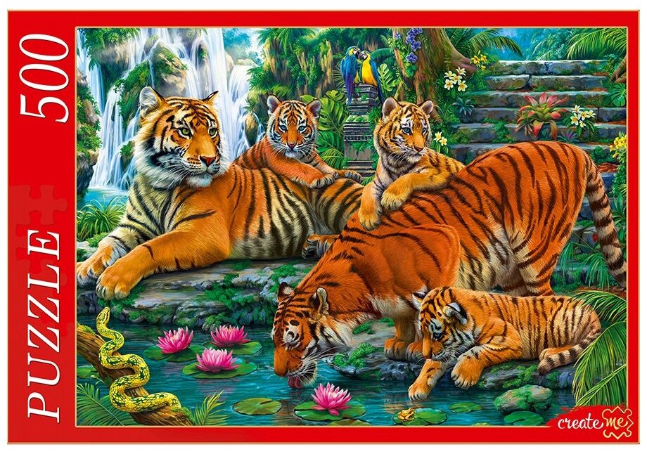 Puzzle-500 "СЕМЬЯ ТИГРОВ" (Х500-2186) Рыжий кот 500 элементов "Семья тигров"