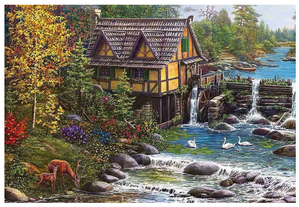 Сервис сравнения цен СкидкаГИД предлагает сравнить цены на товар «TOPpuzzle-500 "Водяная мельница" (ХТП500-4229) Рыжий кот»