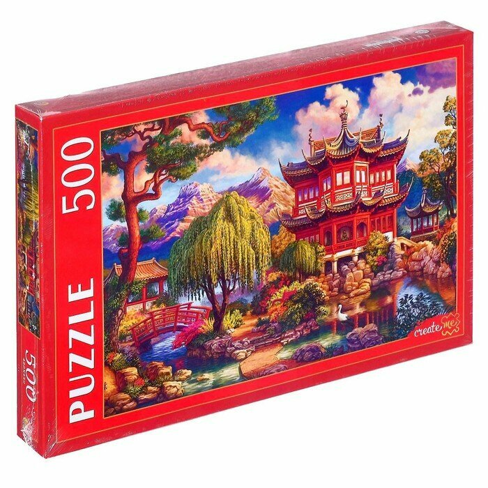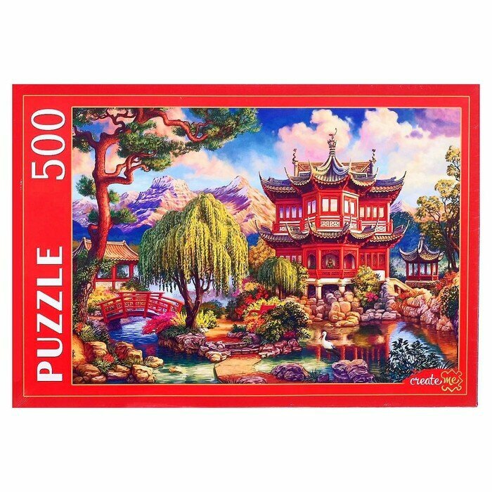 Puzzle-500 "Восточная пагода у пруда" (Ф500-5147) Рыжий кот