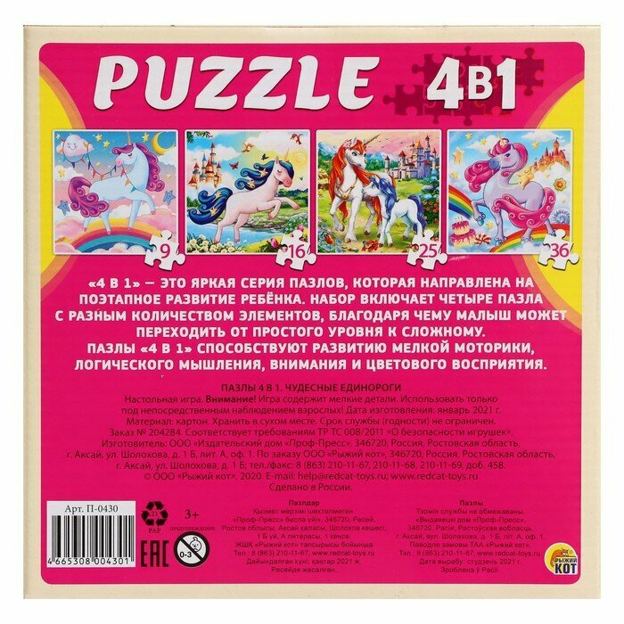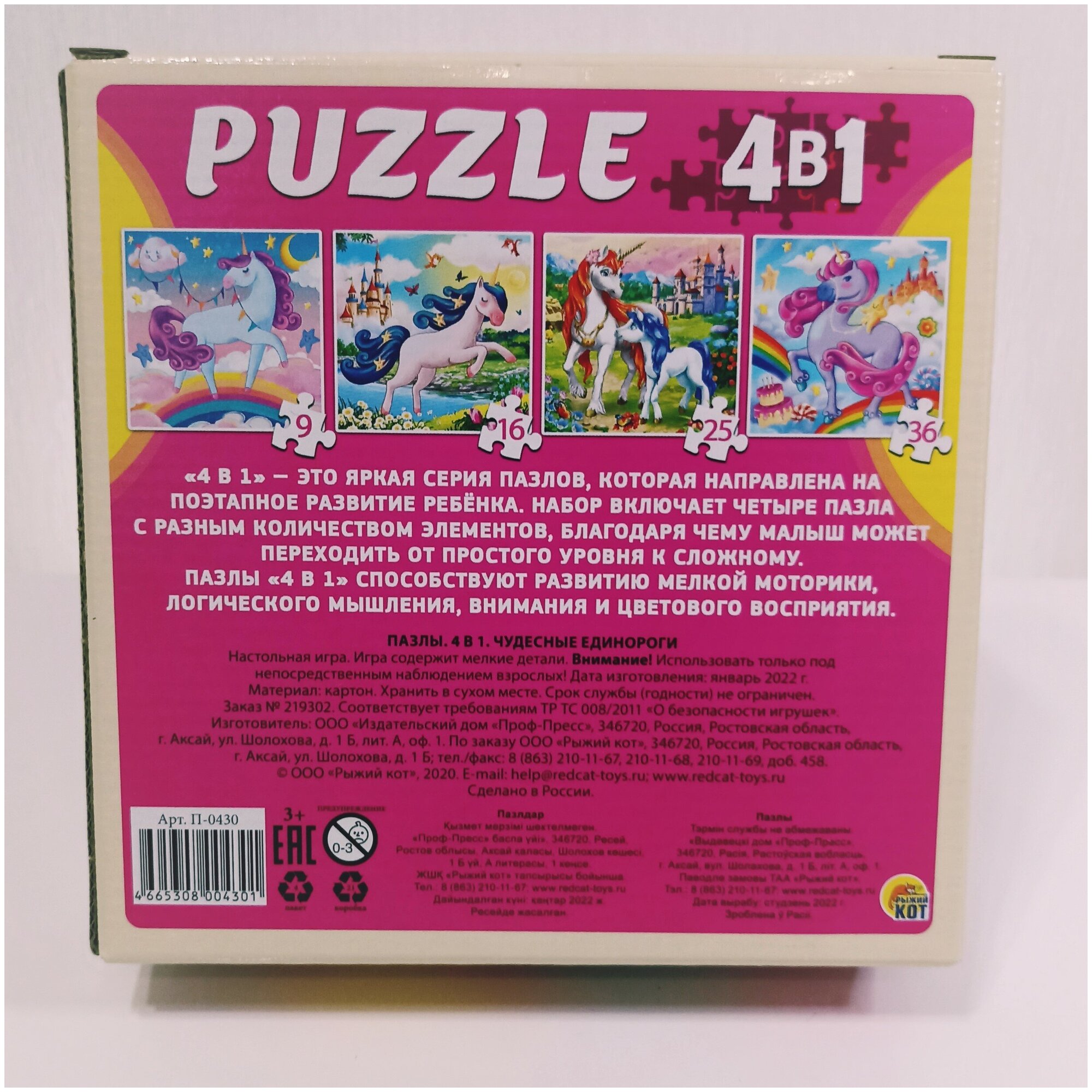 Сервис сравнения цен СкидкаГИД предлагает сравнить цены на товар «Пазлы 4в1 "Чудесные единороги" (П-0430) Рыжий кот»