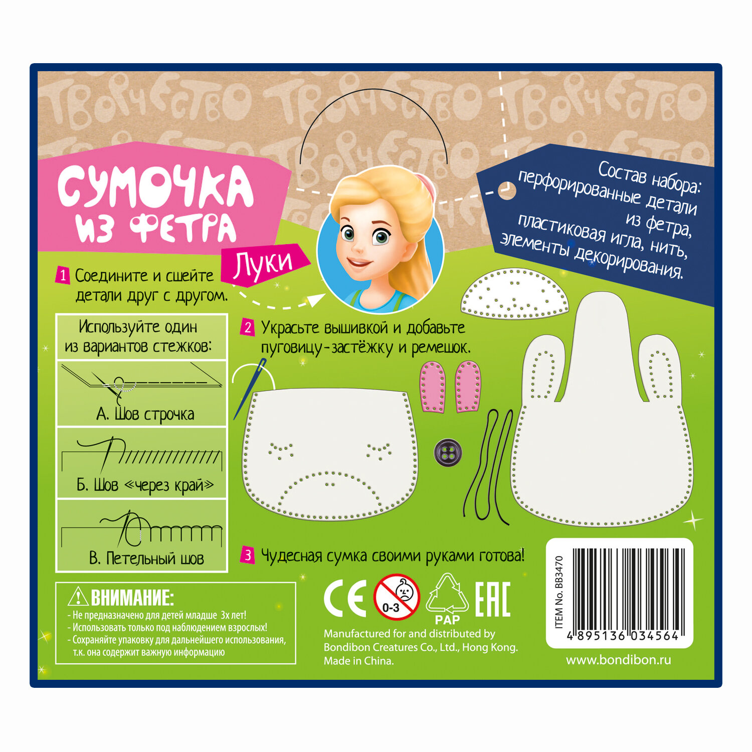 На сегодняшний день товар «Набор для творчества. Сумочка из фетра "Зайчик" (ВВ3470) Bondibon» можно купить с кешбеком в 1 магазине: Яндекс.Маркет