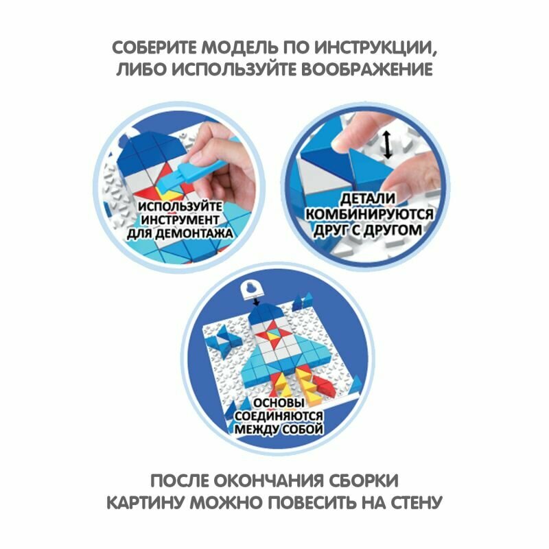 Соберите понравившуюся вам модель по инструкции либо используйте ваше воображение. После окончания сборки можете прикрепить к основе крючок и повесить на стену. Если вы хотите разобрать картинку, используйте палочку для более легкого отсоединения деталей от основы.