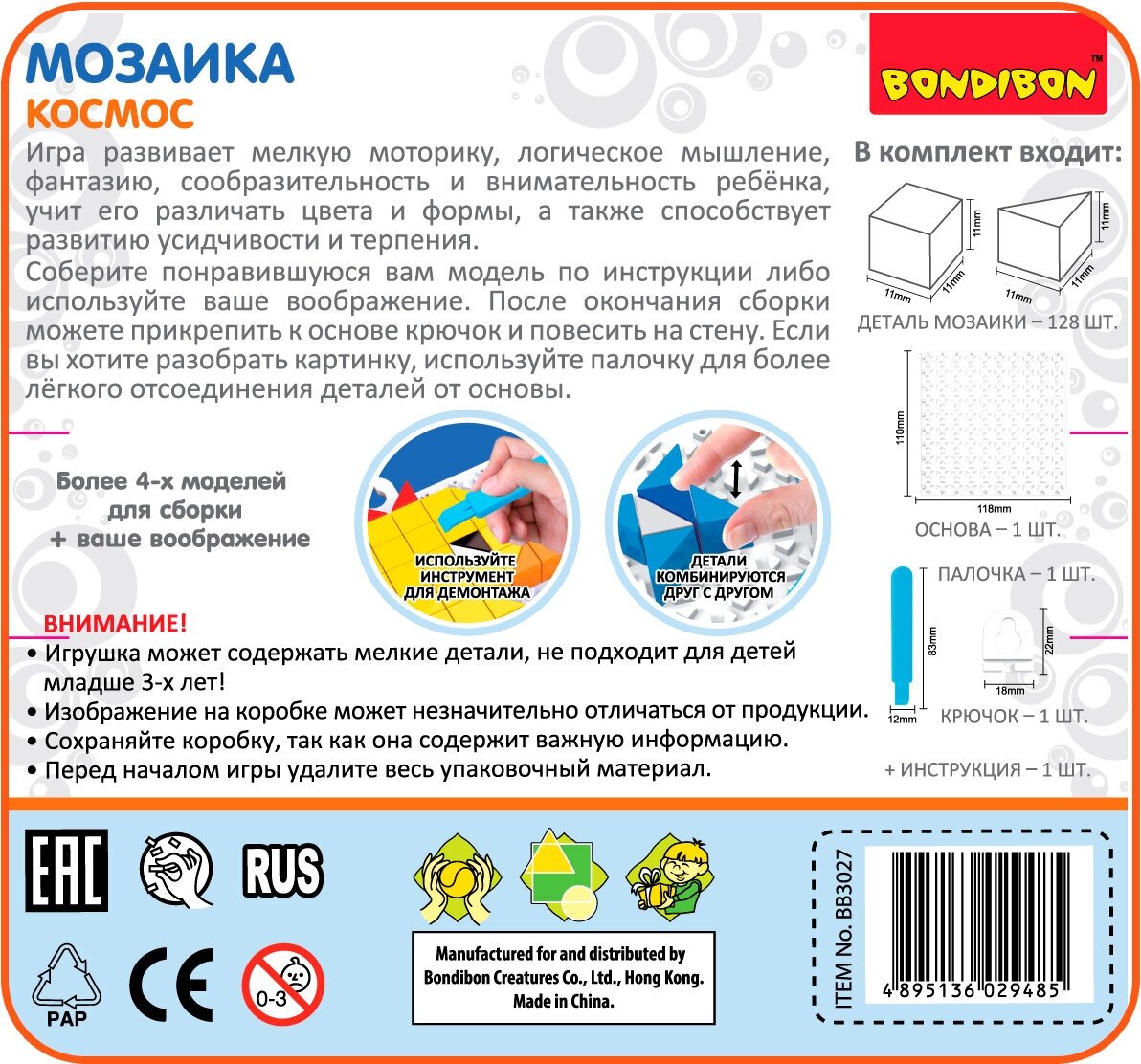 На сегодняшний день товар «Мозаика "Космос" 128 деталей (ВВ3027) Bondibon» можно купить с кешбеком в 1 магазине: Яндекс.Маркет