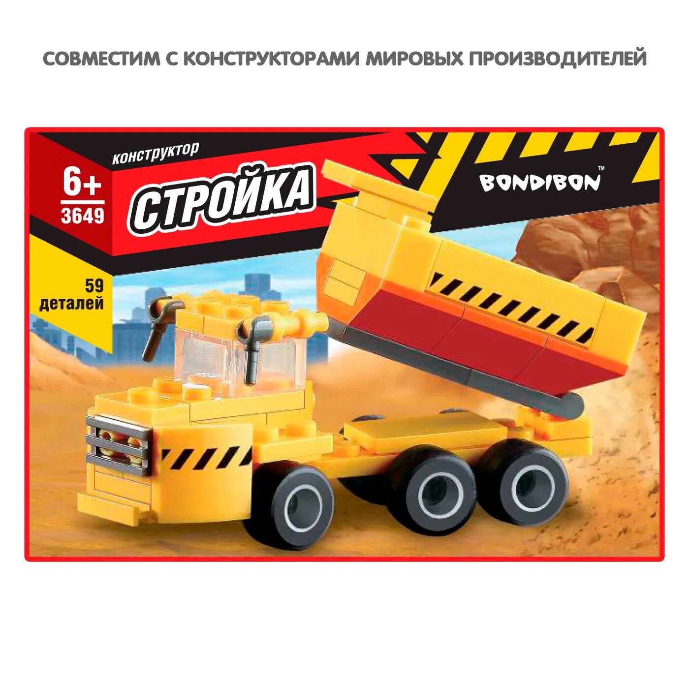 Конструктор "Стройка. Самосвал" (59 деталей) (ВВ3649) Bondibon