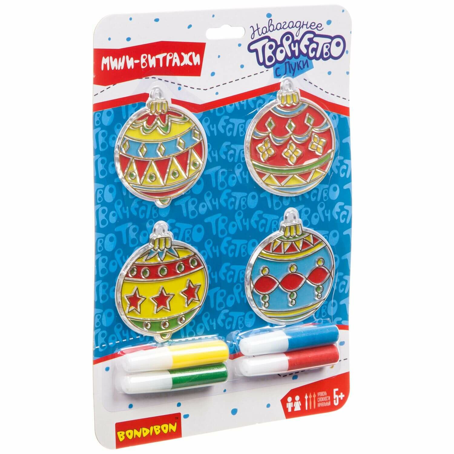 Творчество с Луки "Новогодние украшения. Витраж" 4 штуки (ВВ3431) Bondibon