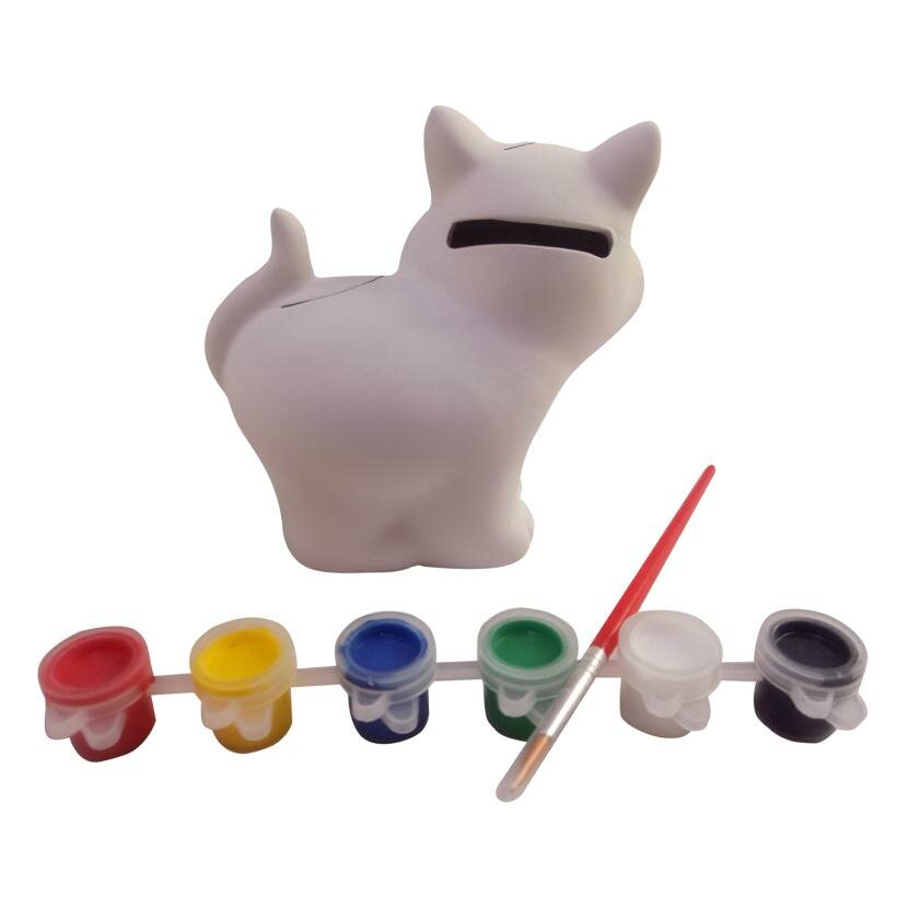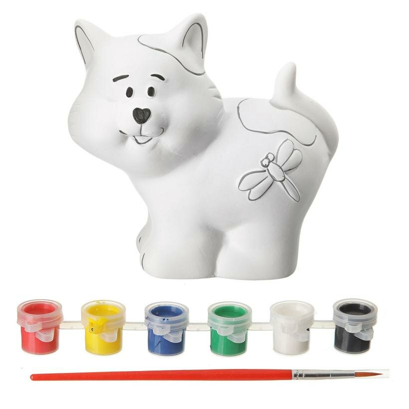 У вашего ребенка появляются интересные идеи по поводу того, как украсить свою комнату вещами собственной ручной работы? Значит надо поддержать его в этом! Например, создать эксклюзивную копилку! Кошечка - очень интересный и увлекательный набор для детского творческого досуга. Набор представляет собой керамическую копилку в виде фигурки, которую нужно раскрасить различными цветами так, как вам подскажет фантазия. Раскрашивать изделия из керамики - очень интересно и увлекательно. Готовая расписная керамическая копилка станет прекрасным украшением любого интерьера или замечательным подарком для близких и друзей. Процесс раскрашивания помогает развить творческие способности, усидчивость, внимательность, самостоятельность, координацию движений.