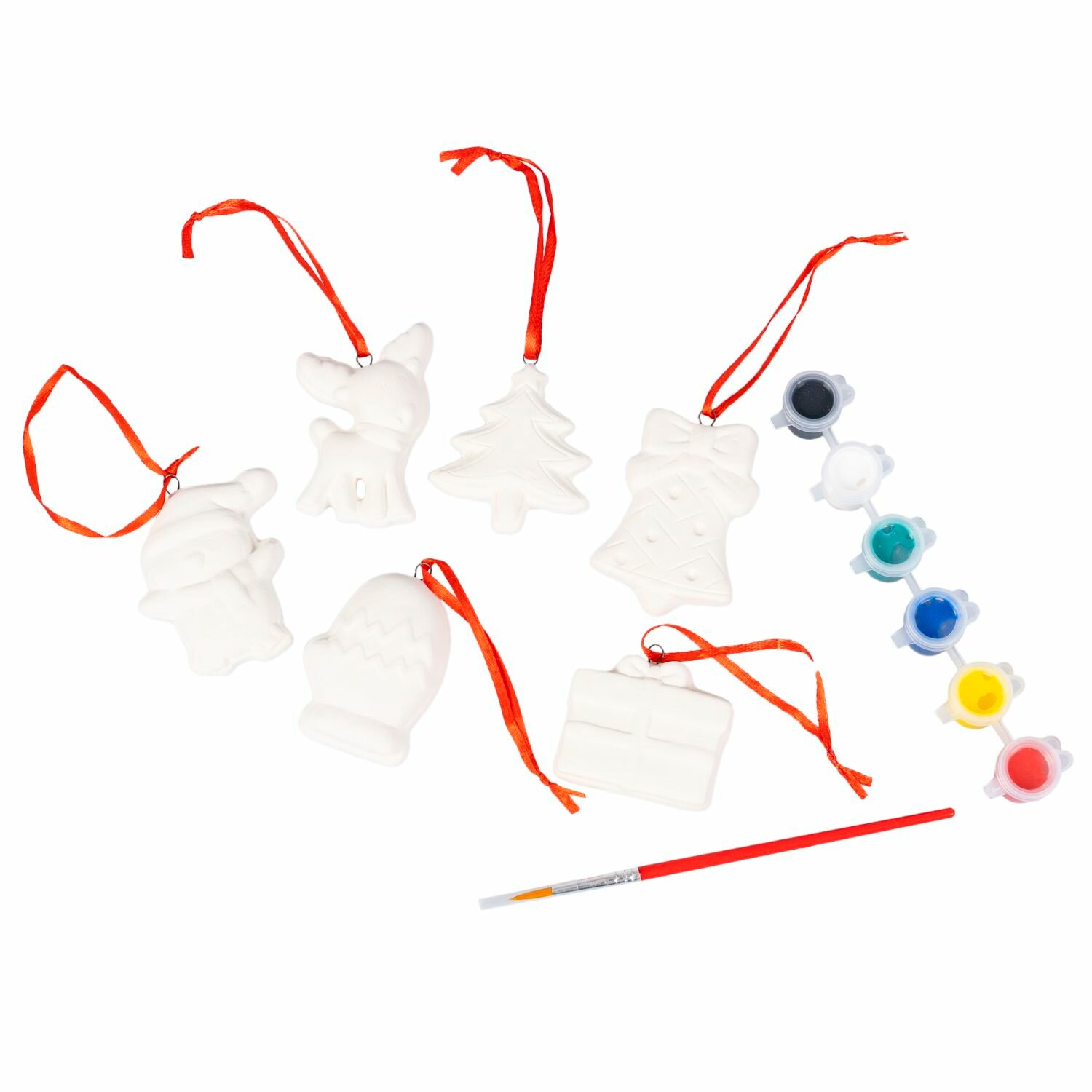 Набор для творчества - создание оригинального подарка своими руками. В комплекте есть всё необходимое для росписи: 6 керамических фигурок и 6 разноцветных красок с кисточкой.