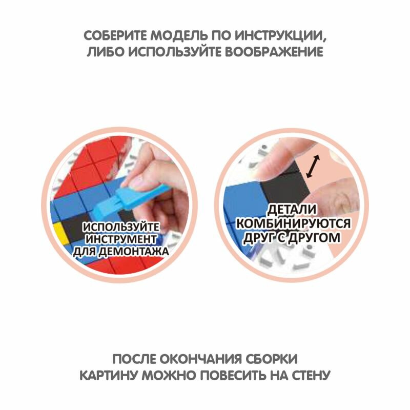 Соберите понравившуюся вам модель по инструкции либо используйте ваше воображение. После окончания сборки можете прикрепить к основе крючок и повесить на стену.
