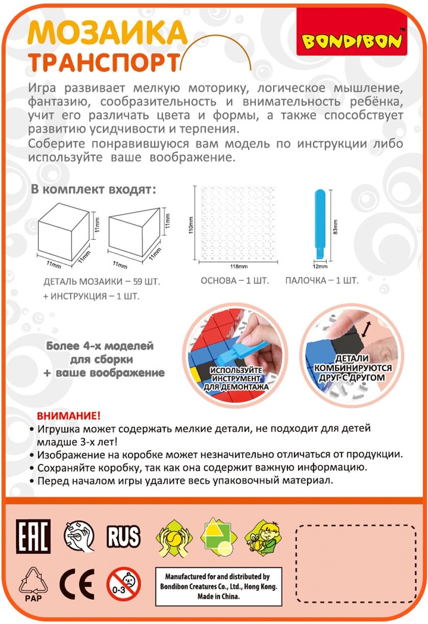 Игра логическ.развивающ Мозаика «ТРАНСПОРТ» (ВВ4427) Bondibon