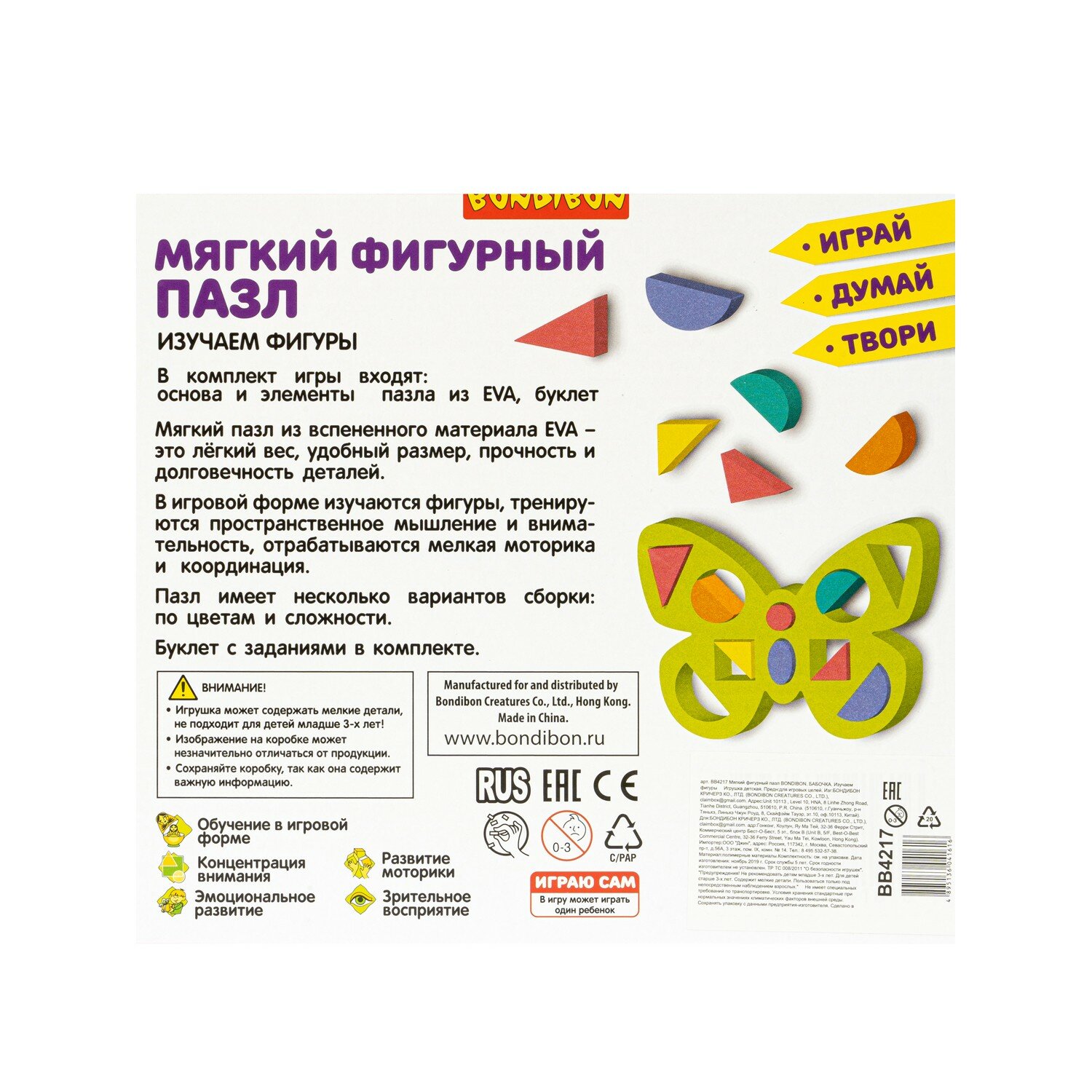 На сегодняшний день товар «Мягкий фигурный пазл "Изучаем фигуры. Бабочка" (ВВ4217) Bondibon» можно купить с кешбеком в 1 магазине: Яндекс.Маркет