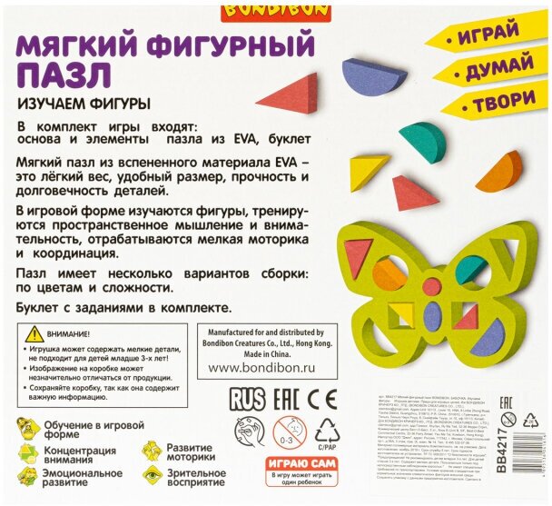 Сервис сравнения цен СкидкаГИД предлагает сравнить цены на товар «Мягкий фигурный пазл "Изучаем фигуры. Бабочка" (ВВ4217) Bondibon»