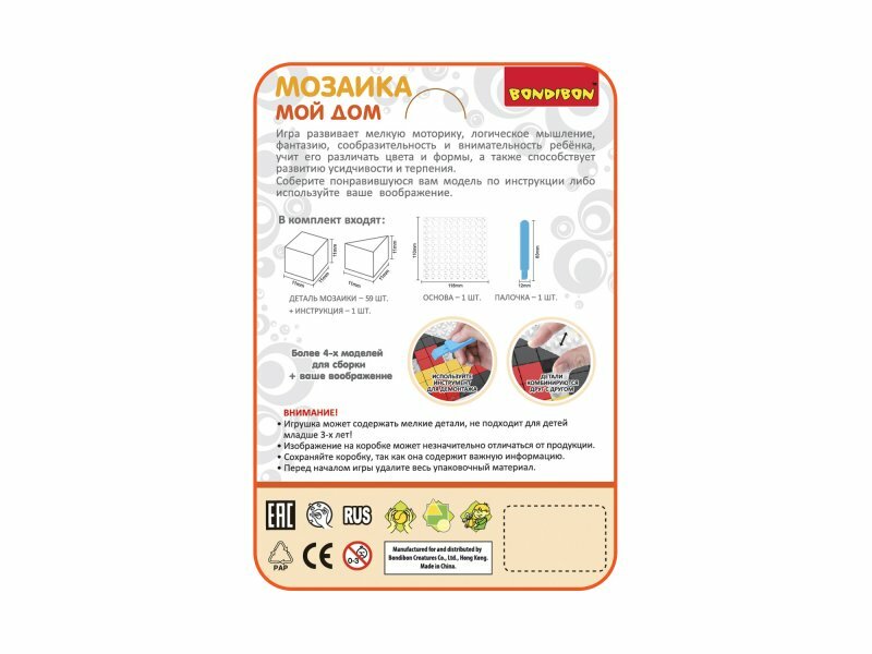 Игра логическая развивающая Мозаика «МОЙ ДОМ» (ВВ4423) Bondibon