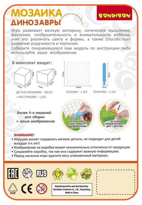 Сервис сравнения цен СкидкаГИД предлагает сравнить цены на товар «Игра логическ.развивающ Мозаика «ДИНОЗАВРЫ» (ВВ4425) Bondibon»