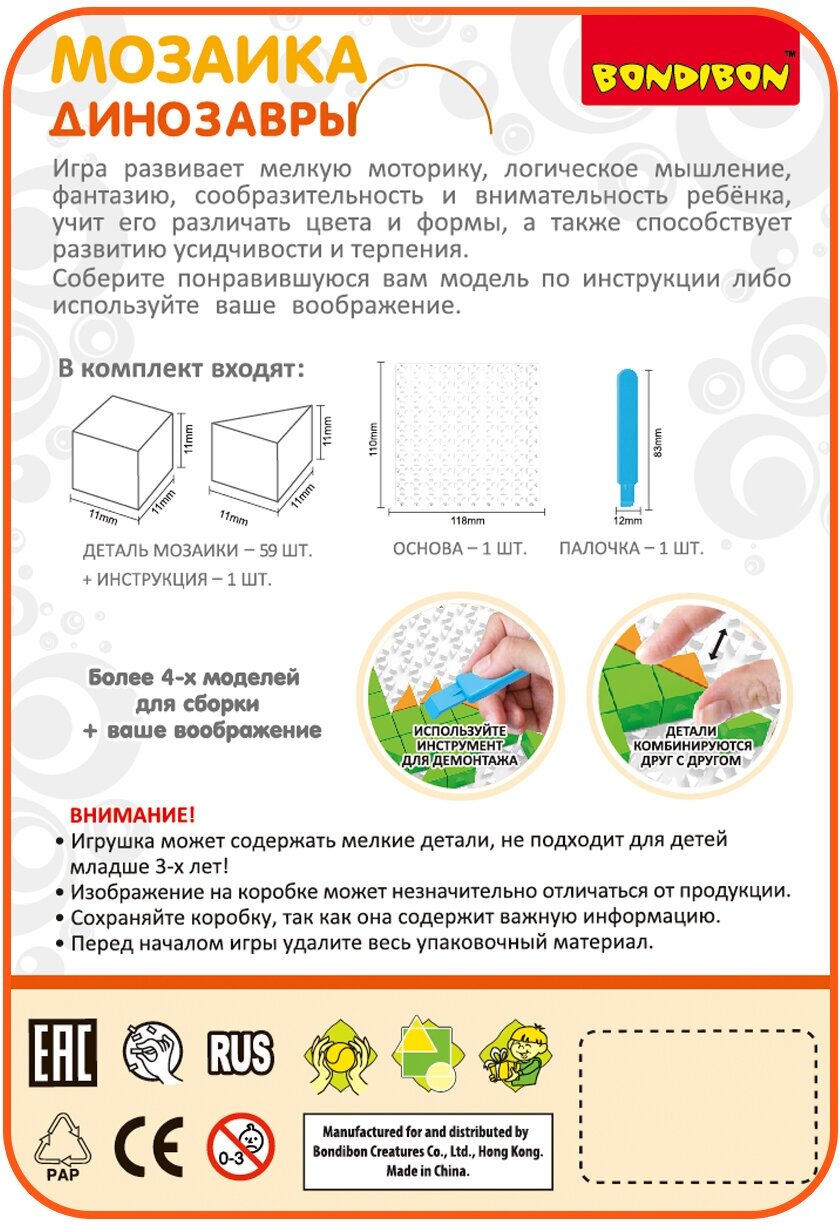 Игра логическ.развивающ Мозаика «ДИНОЗАВРЫ» (ВВ4425) Bondibon
