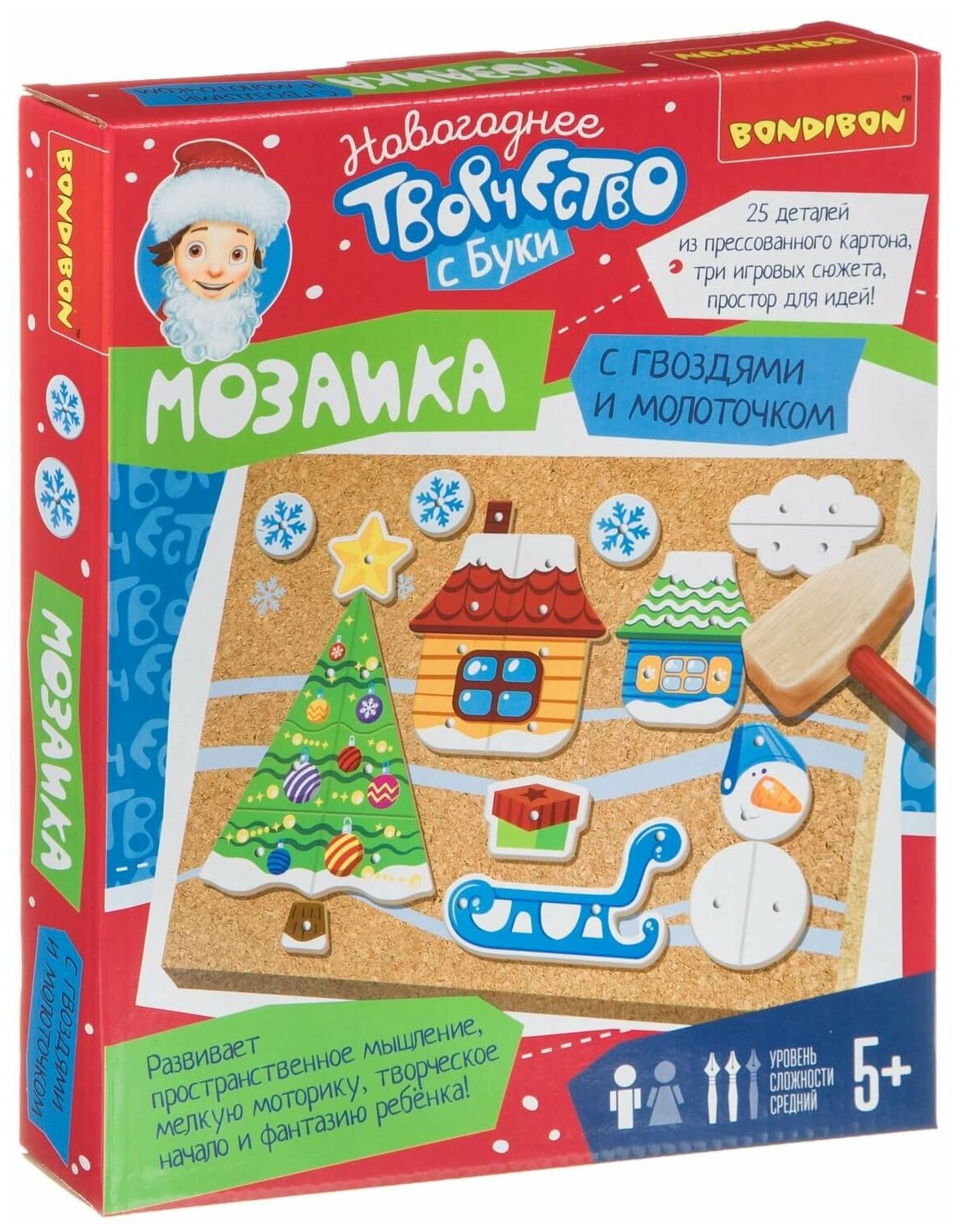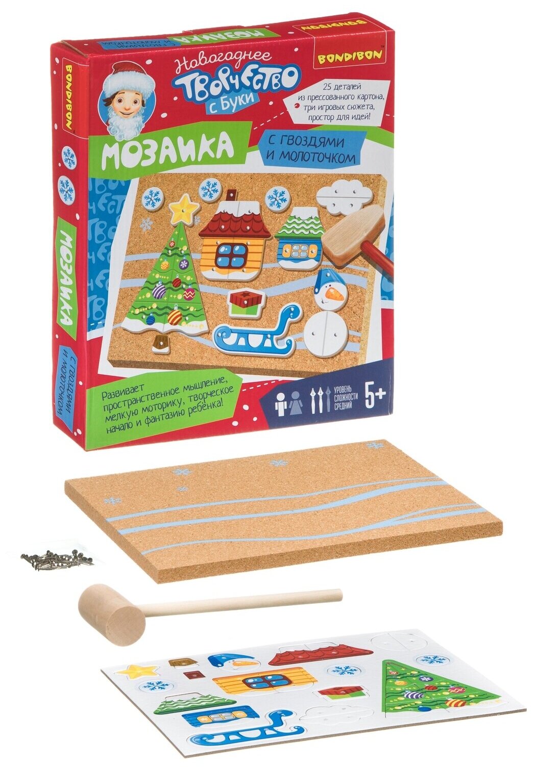 Новогодний набор для творчества. Мозаика с гвоздями и молоточком (ВВ4634) Bondibon