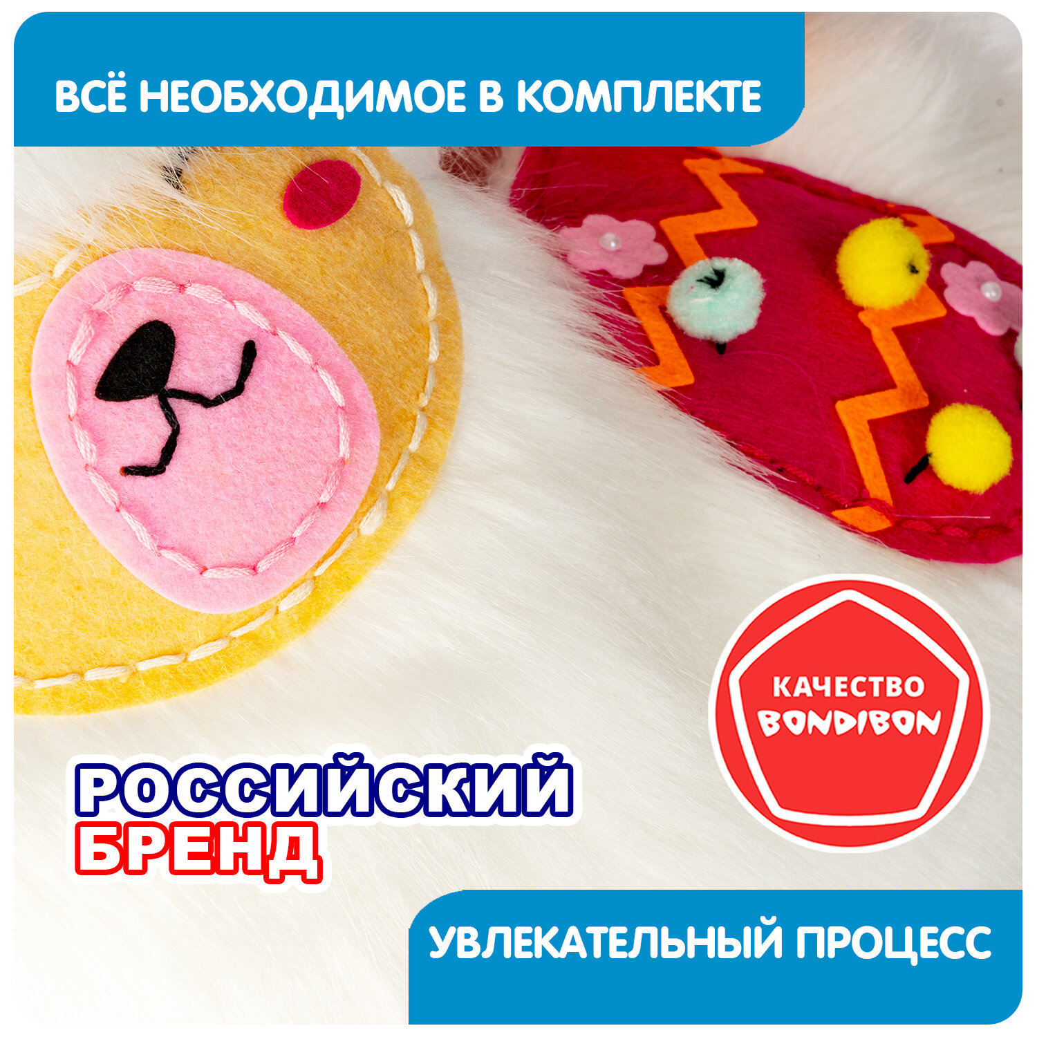 В набор входит: части игрушки, нитки, украшения из фетра, нитей и пластика, помпоны, безопасная игла, наполнитель, инструкция.