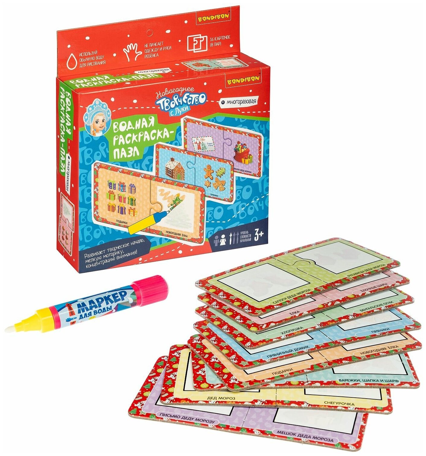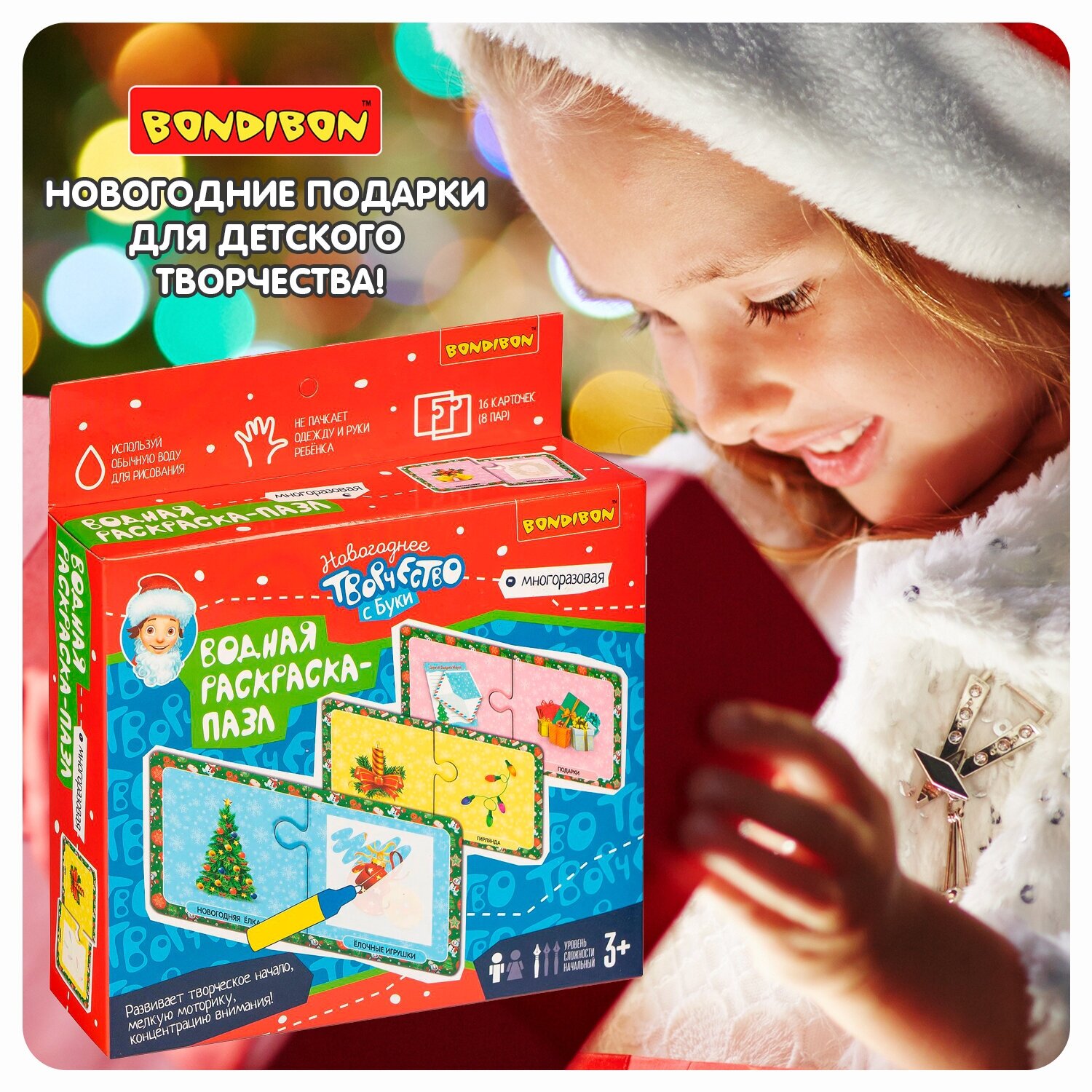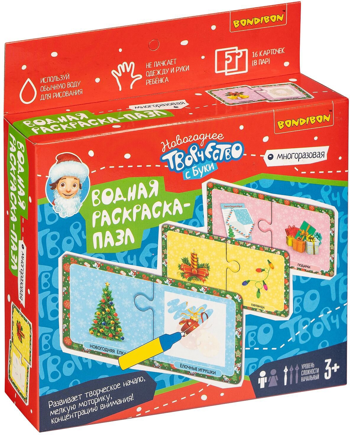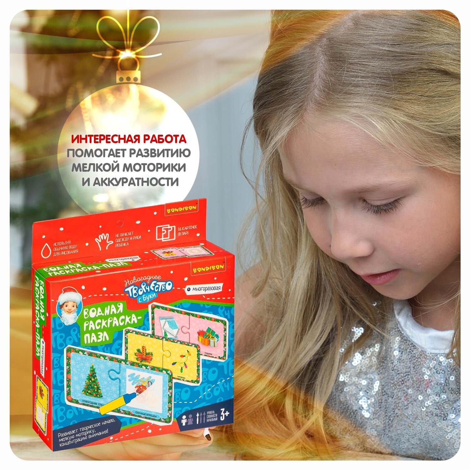 Набор пазлы-водные раскраски "Новогодние" (ВВ4525) Bondibon