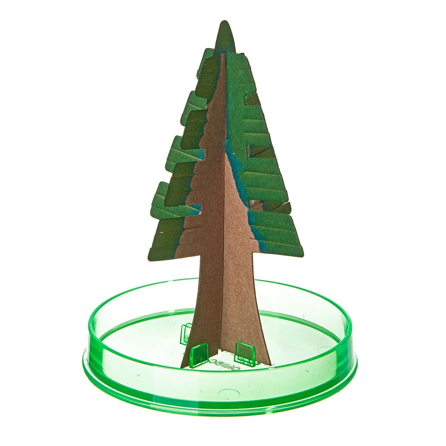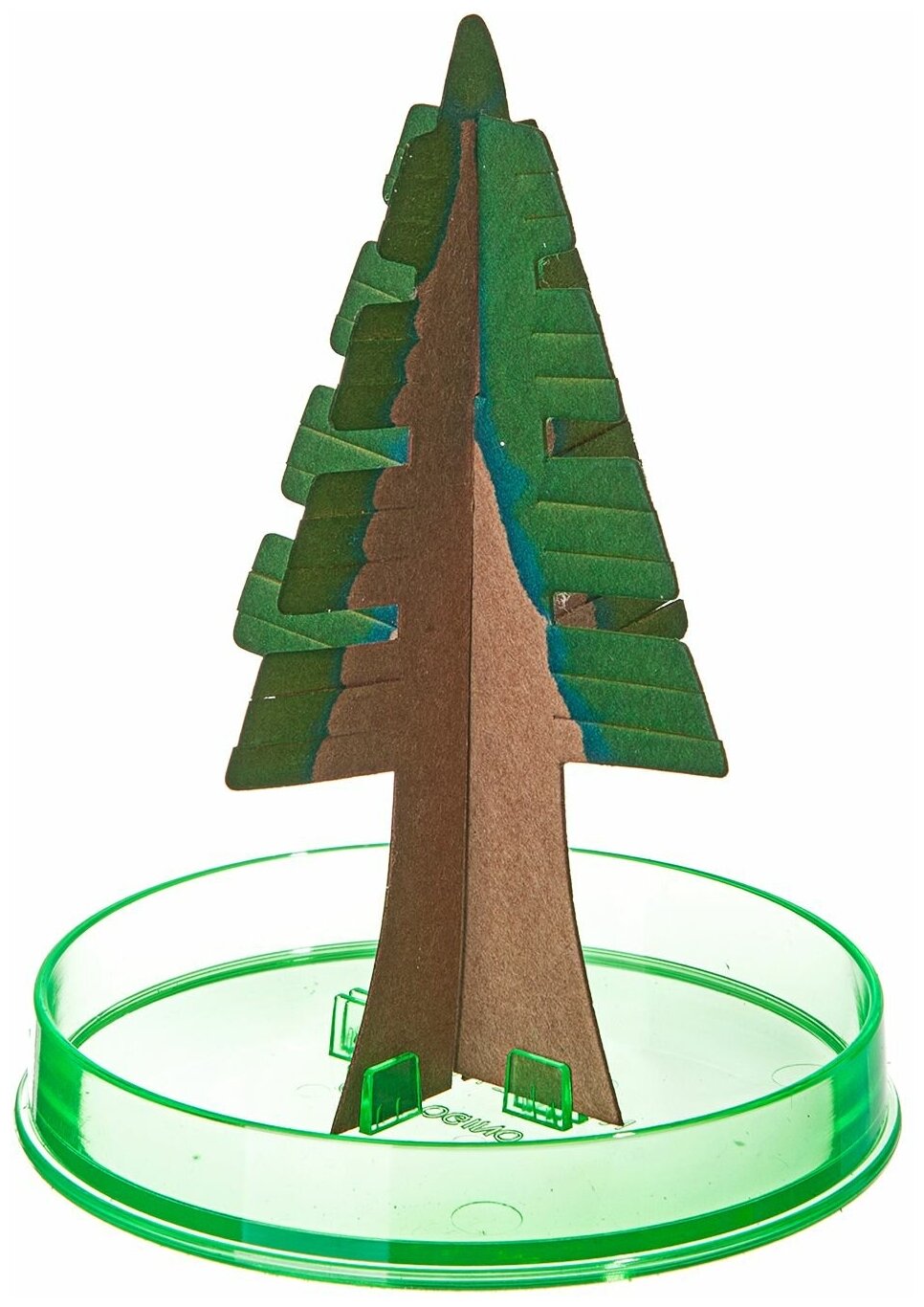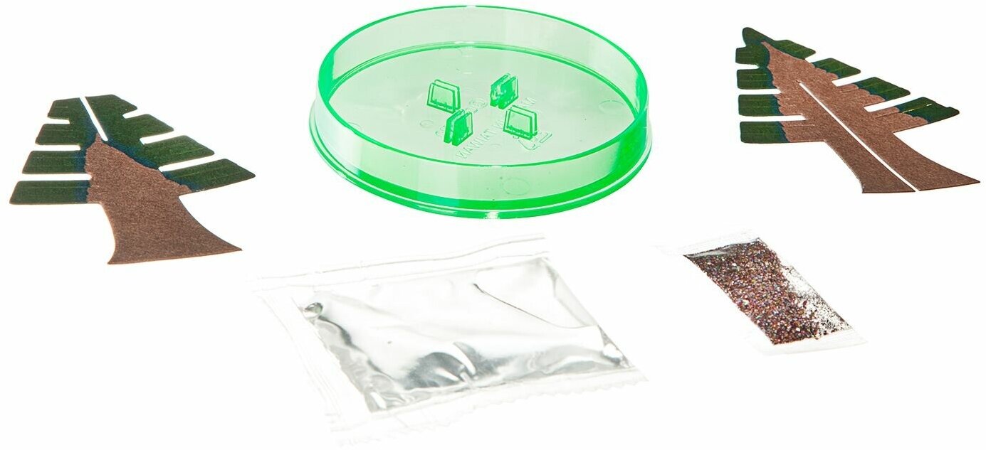 интересный набор для творчества. ребенок в 4 года был в восторге. кристаллы вырастают на глазах. всё очень просто, собираем ёлочку из картона, вставляем в подставку, жидкость выливаем в подставку. если это сделать в первую половину дня, то к вечеру на ёлке вырастут иголки. Ёлка получается очень красивой, кристаллы как настоящие иголки. Есть и минусы, поделка высотой всего 10 см. и при попытки прикоснутся к ней или хотя бы передвинуть, вся эта красота осыпается. На 5 день, Ёлка почти лысая, ребенка так к ней и тянет.