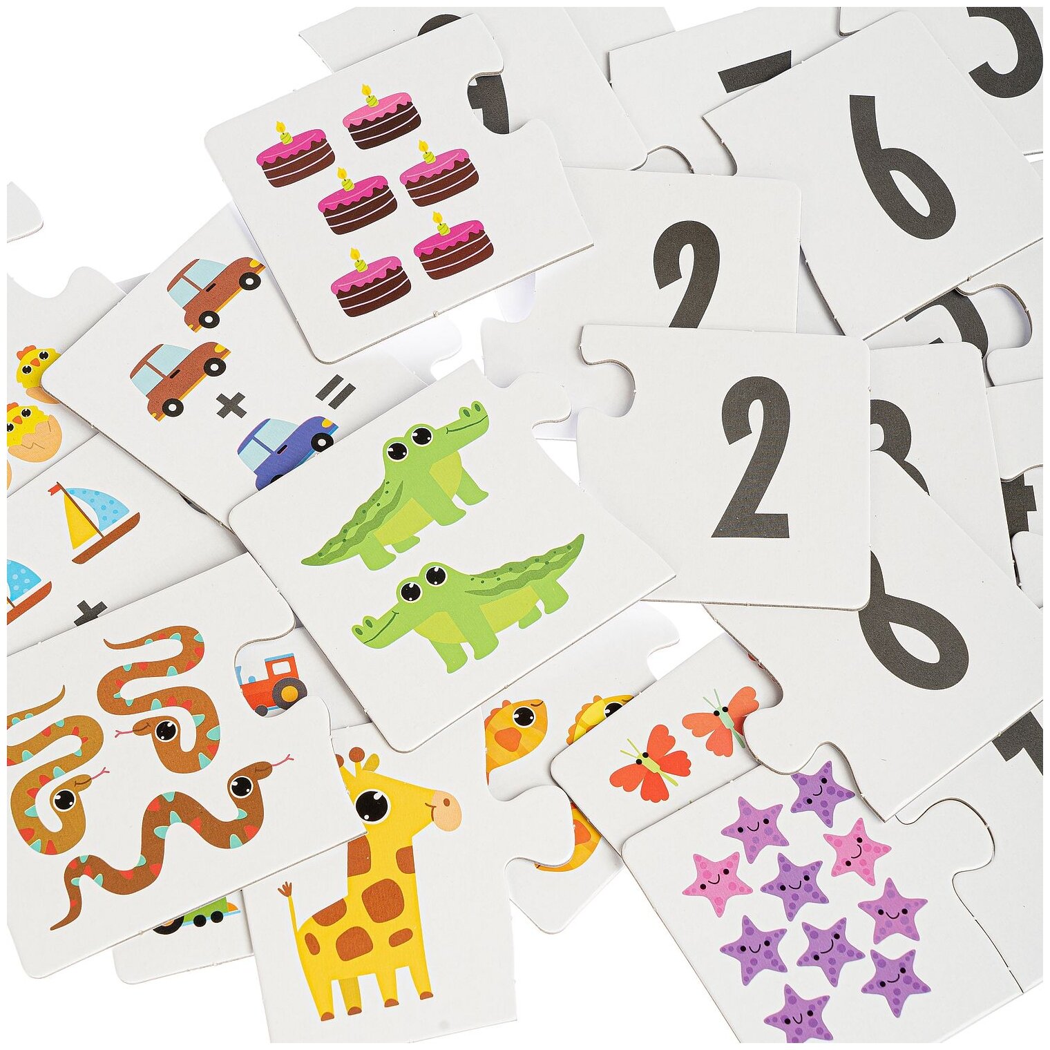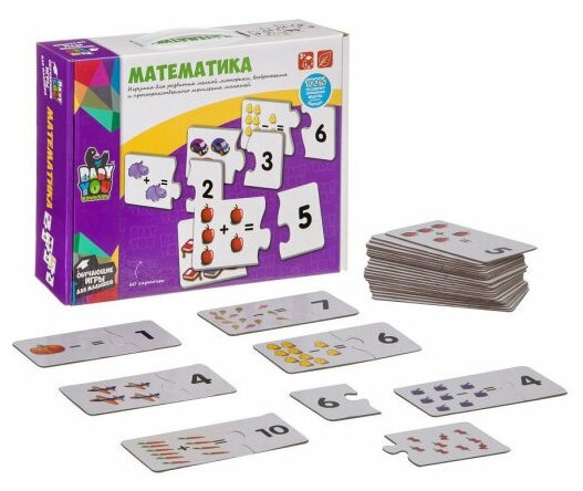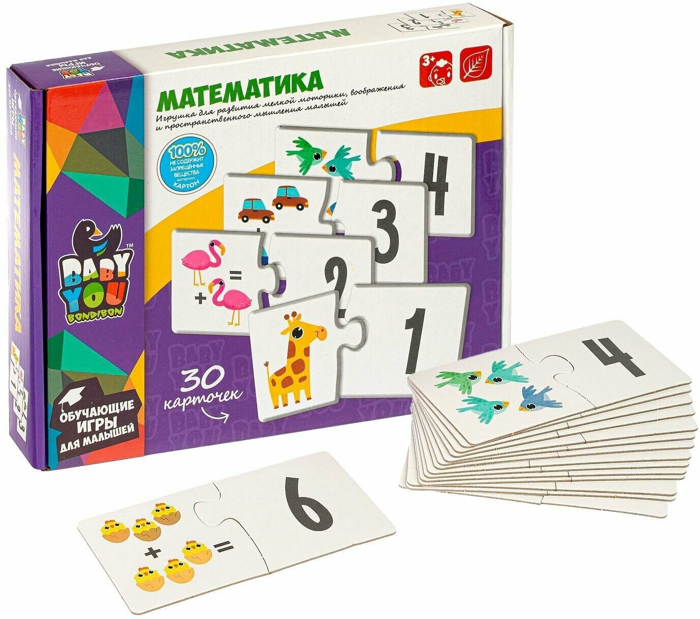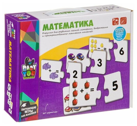 Набор карточек-пазлов "МАТЕМАТИКА" Baby You Bondibon предназначен для детей от 3-х лет и поможет в изучении основ математики. Состоит из двух половинок, одна из которых показывает количество предметов при счете или пример на сложение, а другая цифру, соответствующую изображенному количеству предметов или результат решения примера. Ребенку необходимо верно собрать две половинки, правильно подобрав соответствующие карточки в 15 смысловых группах. Способствует в развитии логического мышления, внимания, речи, памяти, воображения и мелкой моторики.