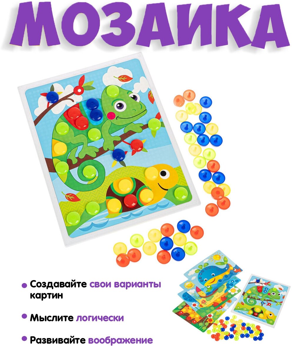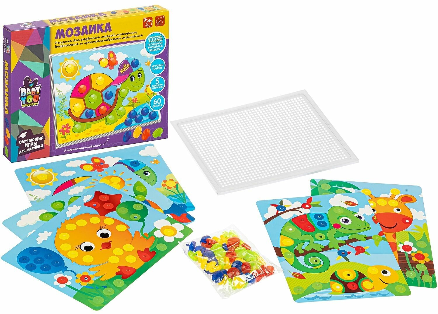 Мозаика для малышей 5 картинок-шаблонов 60 фишек (ВВ5094) Bondibon