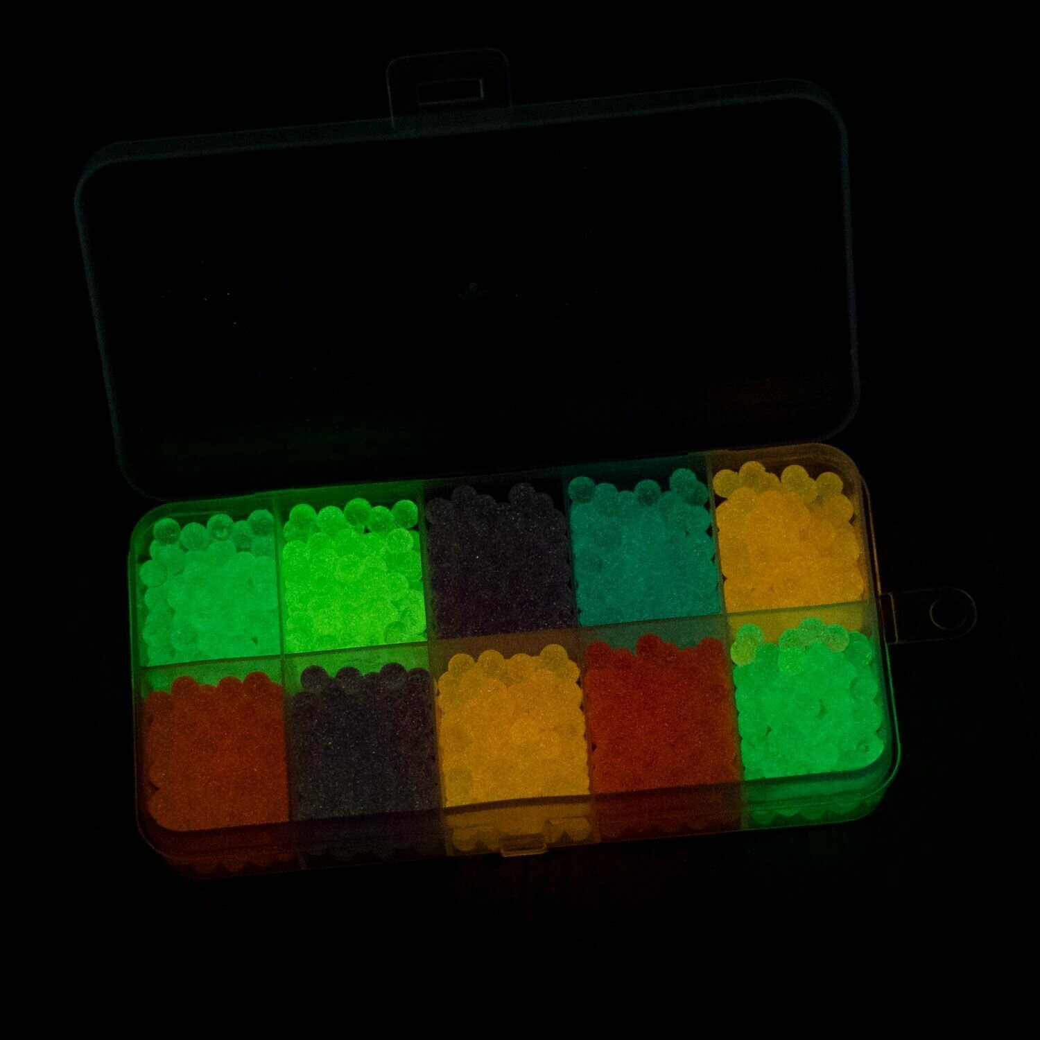 Набор дополнительных бусин для вашего увлечения аквамозаикой: 8 нежных оттенков, 2 из которых (прозрачные) СВЕТЯТСЯ В ТЕМНОТЕ!