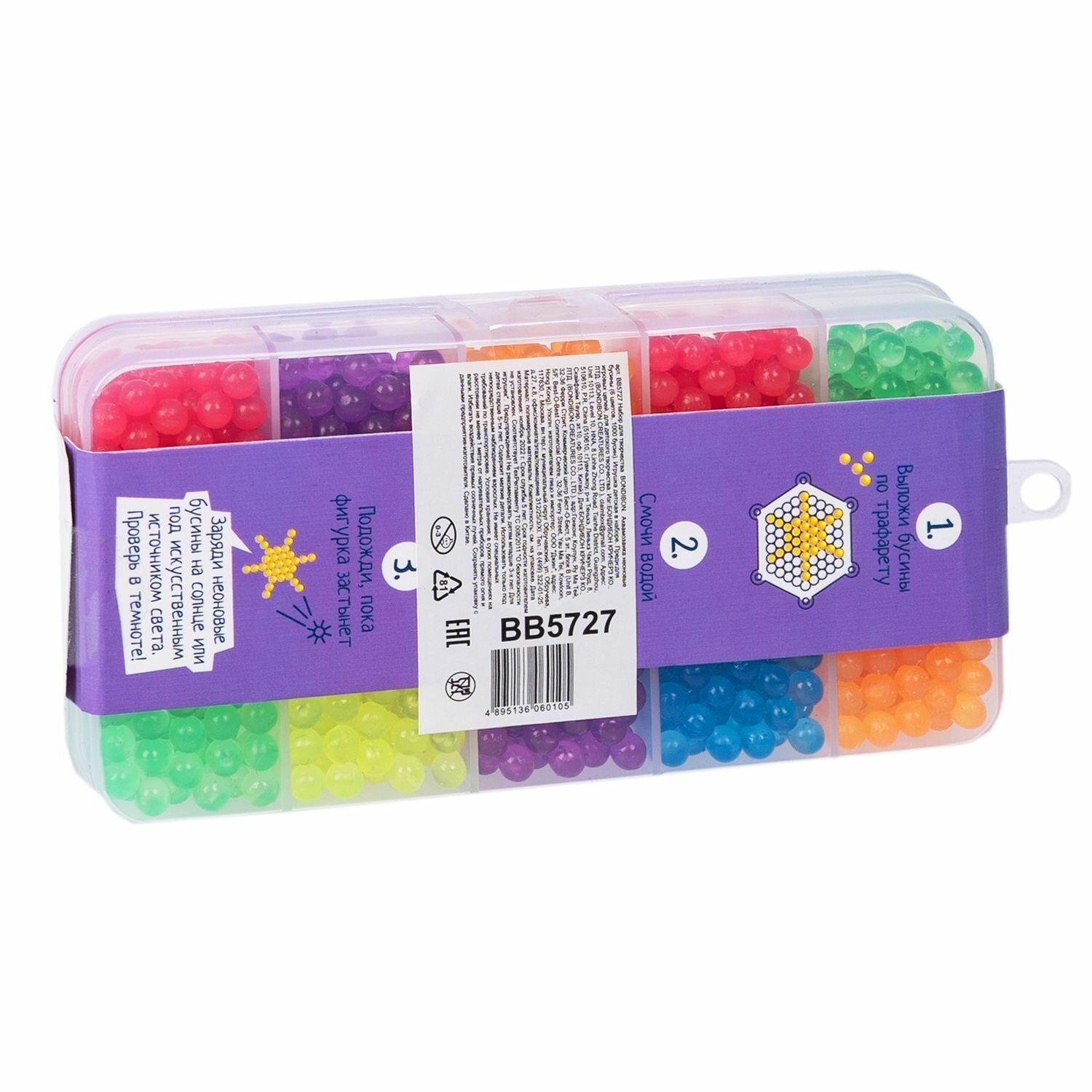 1000 бусин разных цветов в в удобном компактном пластковом боксе - отличное дополнение к наборам аквамозаики от BONDIBON!