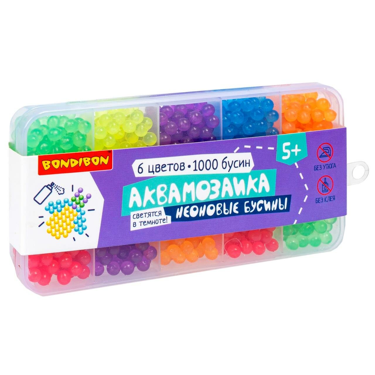 Аквамозаика. Бусины (6+2 неоновых цвета 1000 шт.) (ВВ4986) Bondibon