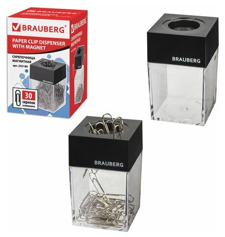 Скрепочница магнитная "BRAUBERG" с 30 скрепками.
