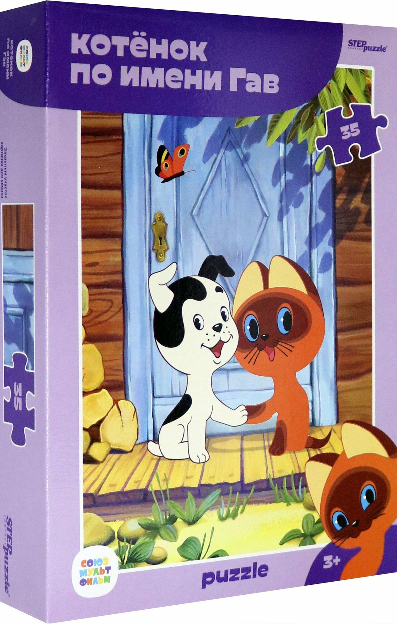 Пазл «Котенок по имени Гав» состоит из 35 деталей. На его картинке мы видим двух добрых друзей.