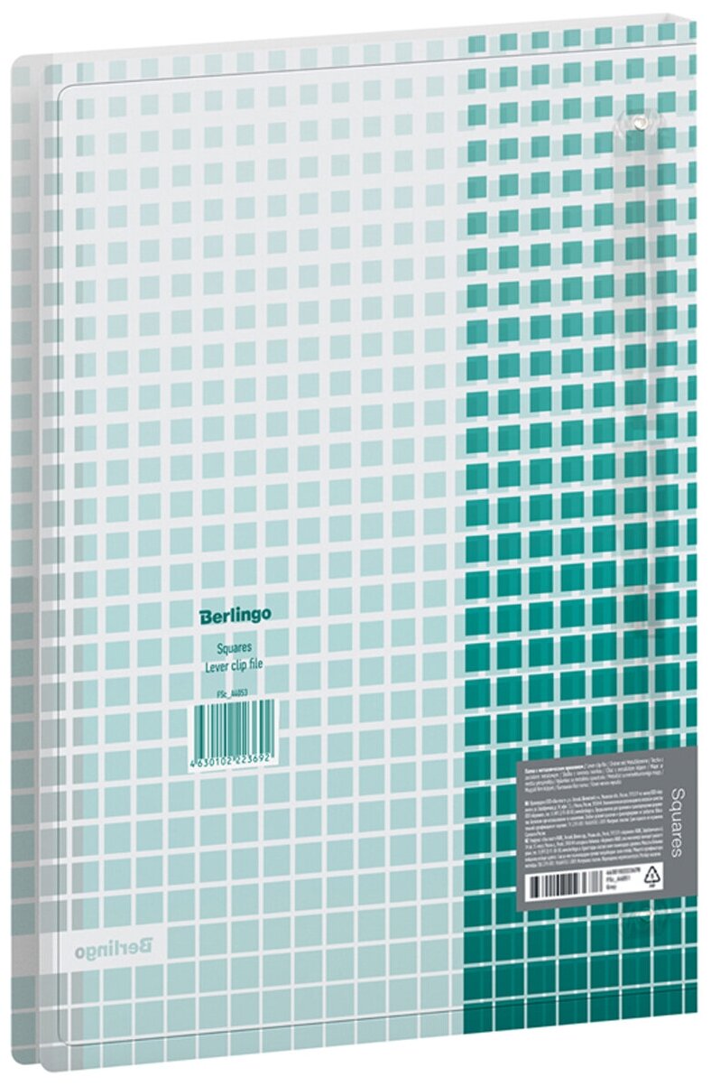 Папка пластиковая с боковым зажимом Berlingo "Squares" А4 с рисунком. Полупрозрачная обложка. Изготовлена из высококачественного полипропилена с матовой текстурой поверхности "песок". Толщина пластика - 600мкм. Предназначена для хранения документов без перфорации. Надежный хромированный зажим. Дополнительный внутренний карман для удобного хранения мелочей. Папка вмещает до 100 листов. Индивидуальная упаковка в пакет.
