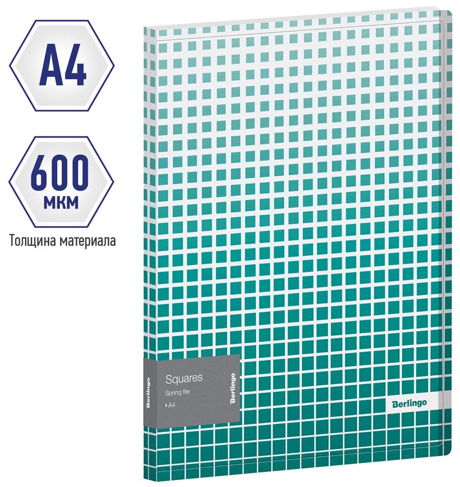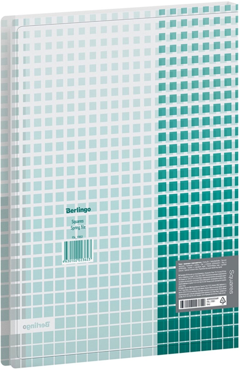Папка пластиковая с пружинным скоросшивателем Berlingo "Squares" А4 с рисунком. Полупрозрачная обложка. Изготовлена из высококачественного полипропилена с матовой текстурой поверхности "песок". Толщина пластика - 600 мкм. Предназначена для хранения перфорированных документов и документов, вложенных в перфофайлы. Черно-красный цвет скоросшивателя. Дополнительный внутренний карман для удобного хранения мелочей. Индивидуальная упаковка в пакет.