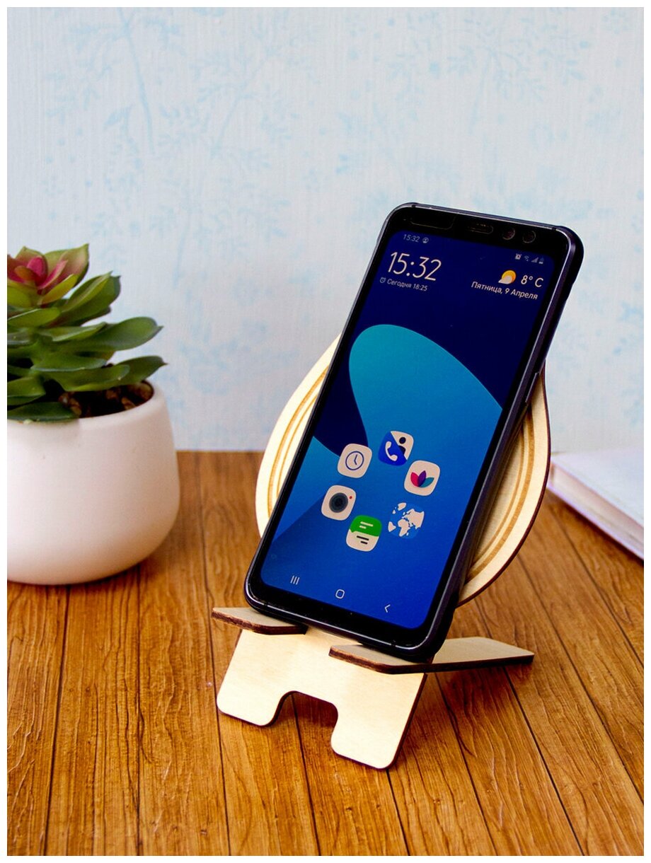Наши позитивные подставки для телефона выполнены из дерева. Такая подставка собирается из двух деталей буквально за считанные секунды. Теперь телефон всегда будет у вас в поле зрения, а хорошее настроение, мы уверены, не покинет вас в течение всего рабочего дня!