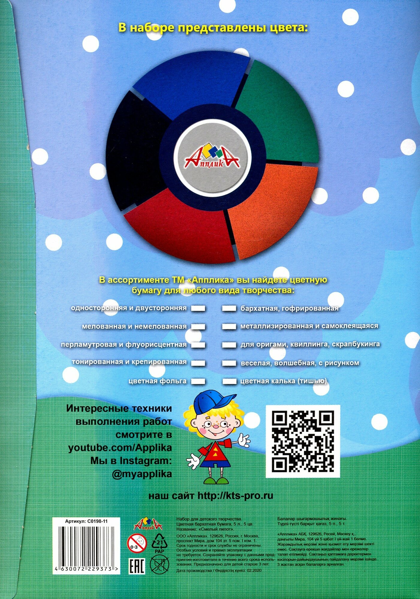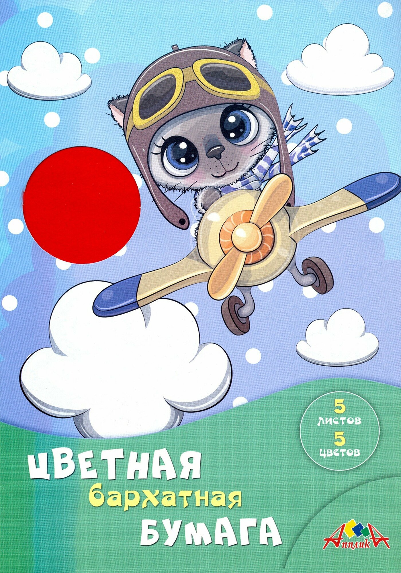Бумага цветная бархатная "Смелый пилот" (5 листов 5 цветов А4) (С0198-11) АппликА