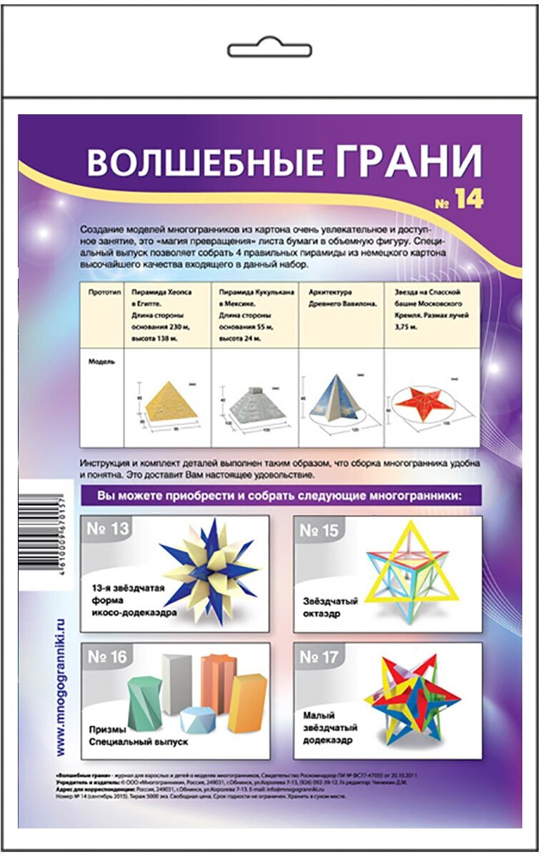 На сегодняшний день товар «Волшебные грани. №14. Многогранники. Пирамиды (6+) КТК Галактика» можно купить с кешбеком в 1 магазине: Яндекс.Маркет