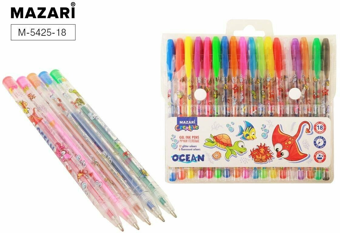 Набор ручек гелевых 18 цветов OCEAN с ароматизированными чернилами (M-5425-18) MAZARI