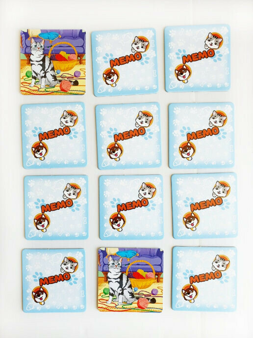 Эта игра поможет вам развить вашу память. Вам необходимо собрать как можно больше пар карточек, т.е. две карточки с одинаковой картинкой. Разложите карточки на столе картинками вниз. Начинает игру самый младший игрок и ход переходит по часовой стрелке. Игроки по очереди переворачивают по две карточки таким образом, чтобы все могли видеть изображенные на них картинки. Если картинки на карточках одинаковые, то игрок забирает их. Он может продолжать игру до тех пор, пока он находит карточки с одинаковыми картинками. Если картинки на карточках не совпадают, то игрок кладёт карточки обратно картинками вниз и ход переходит к следующему игроку, сидящему слева. Выигрывает тот игрок, который к концу игры наберет большее количество парных карточек.