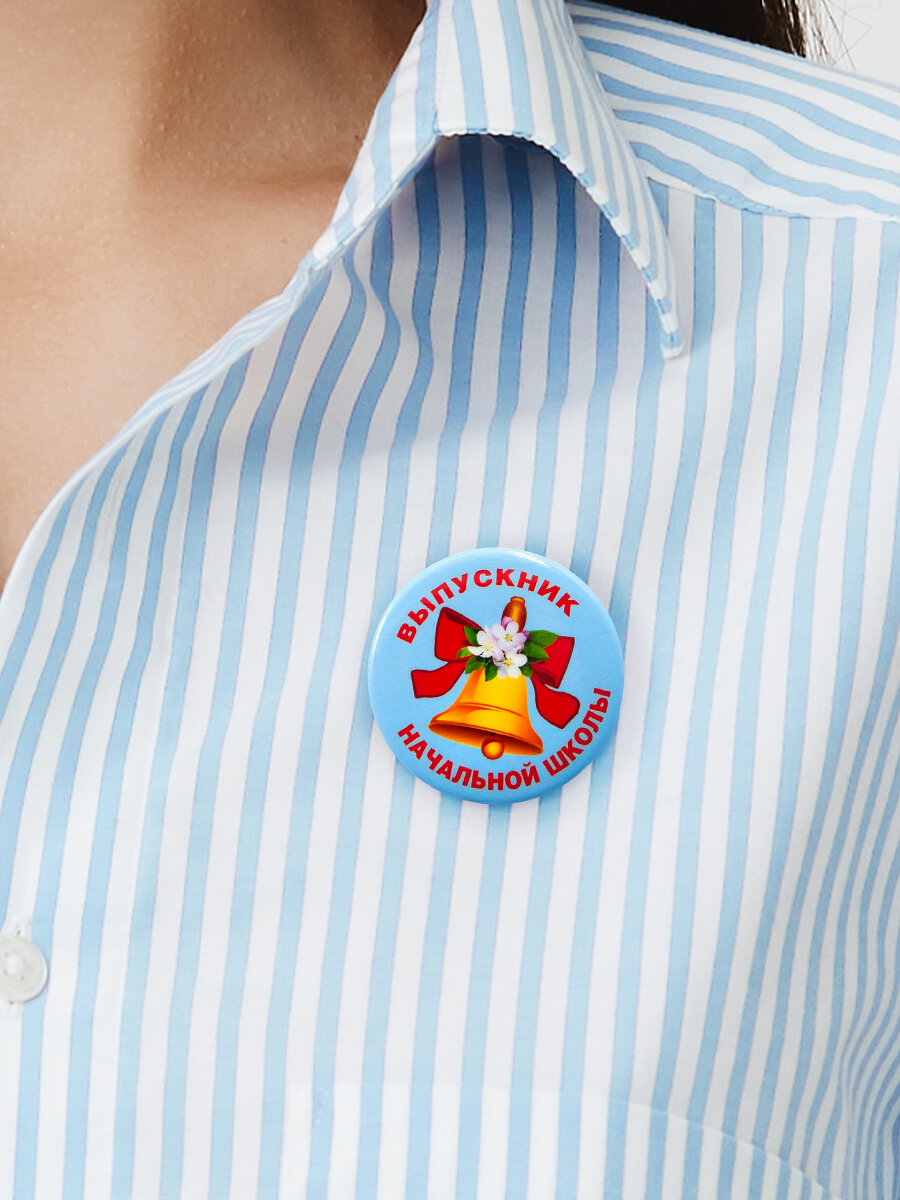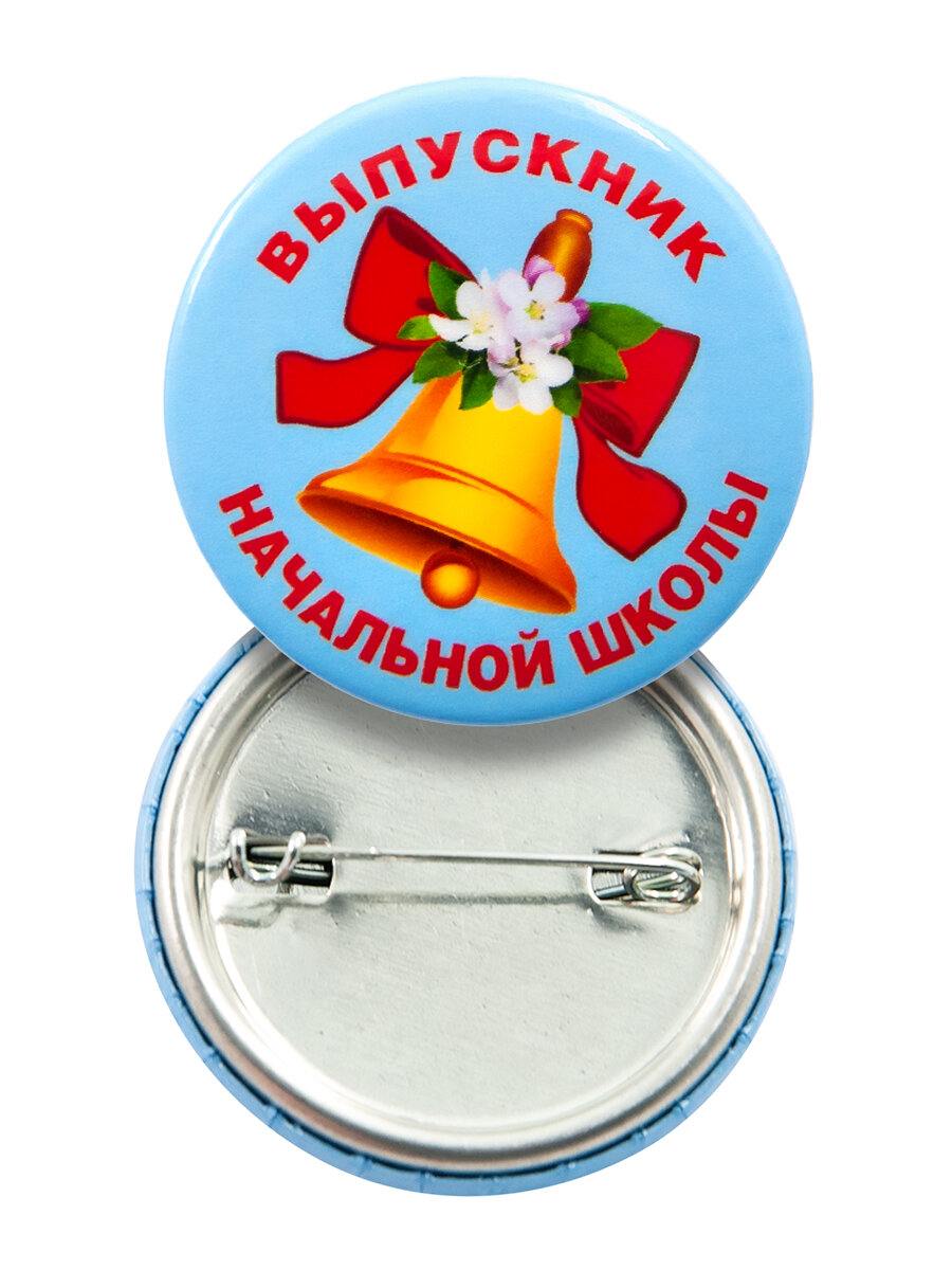 Набор металлических закатных значков диаметром 38 мм к выпускному в начальной школе состоит из 10 значков. Компактный значок с яркой картинкой порадует маленького выпускника! Удобная фасовка по 10 штук.