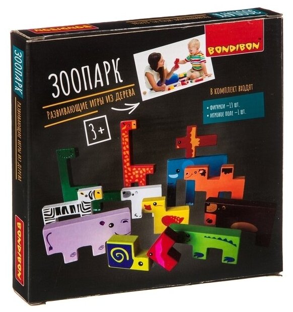 Развивающая деревянная игра-головоломка "Зоопарк" (ВВ4184) Bondibon