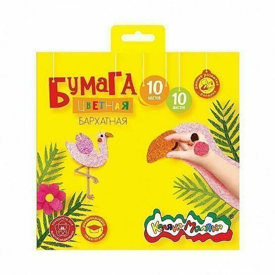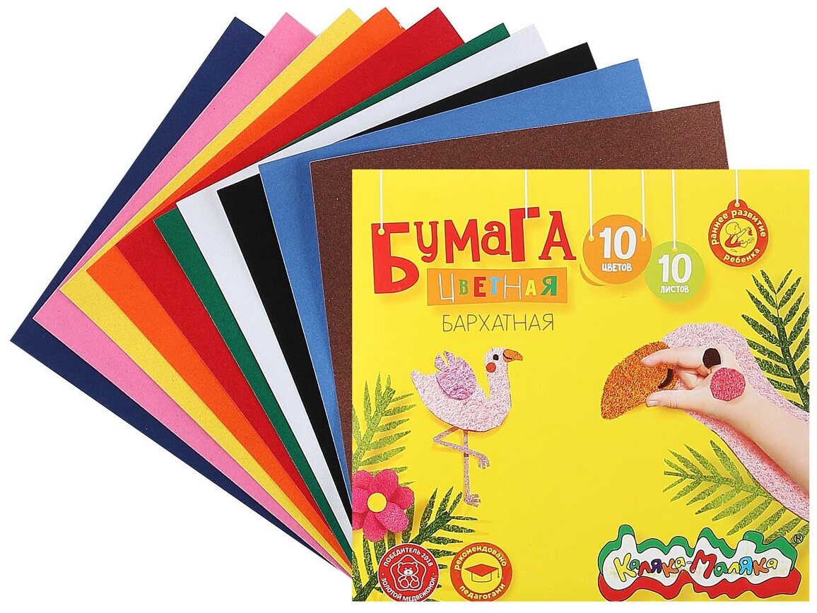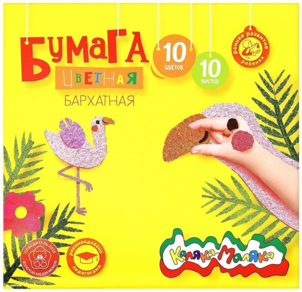 Бумага бархатная 10 цветов 10 листов 170х180 мм. (ББКМ10-2) Каляка-Маляка