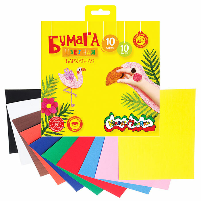 Бархатная бумага Каляка-Маляка® прекрасно сочетается в аппликациях и поделках как с цветной бумагой, так и с картоном.