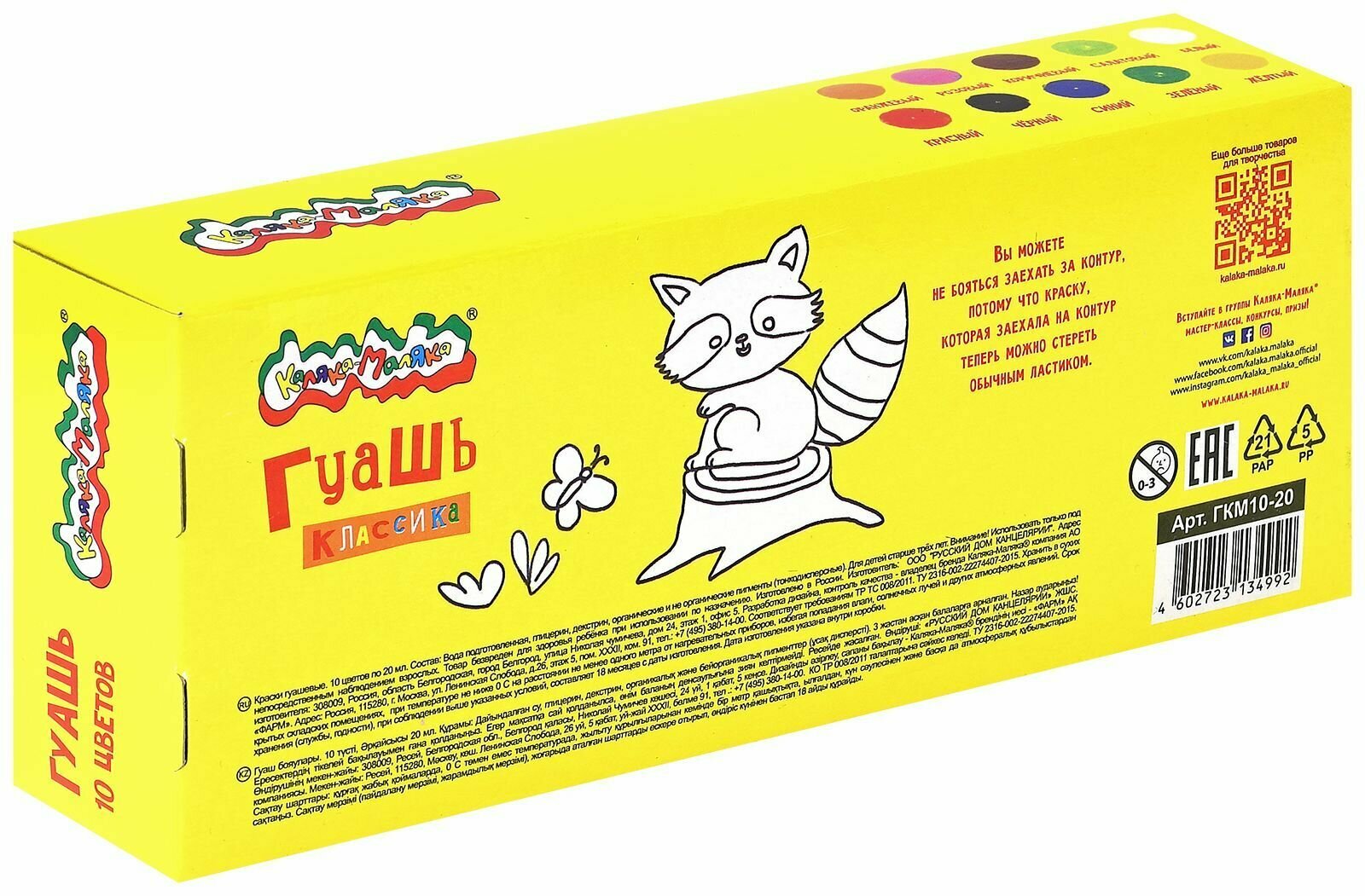 Гуашь "Классика" 10 цветов 20 мл. (ГКМ10-20) Каляка-Маляка