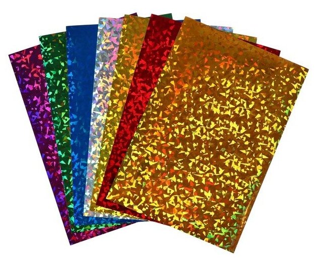 Бумага цветная голографическая ламинированная 7 листов 7 цветов (ФГКМ07) Каляка-Маляка