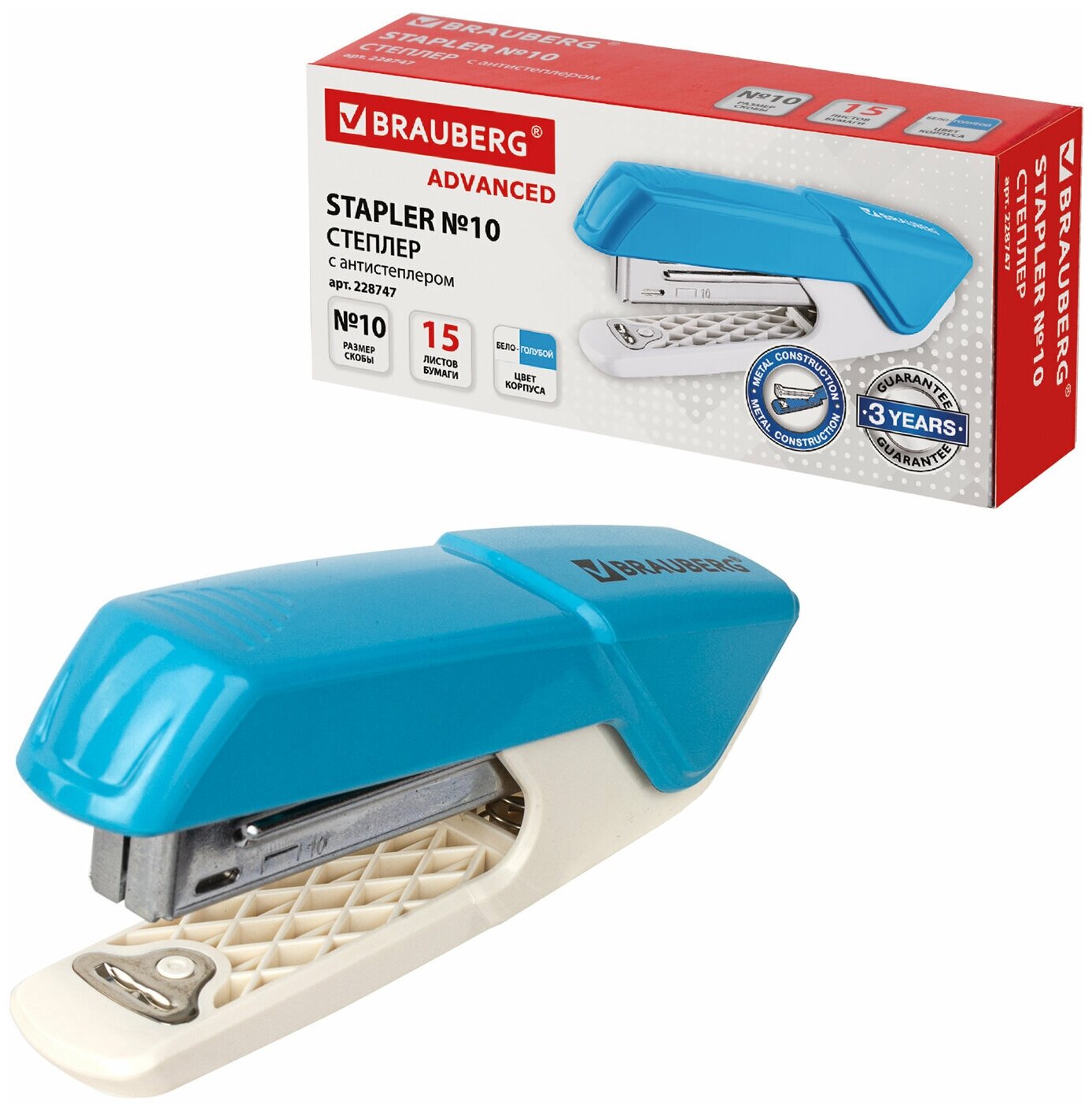 Степлер №10 "ADVANCED" с антистеплером голубой (228747) Brauberg ADVANCED №10
