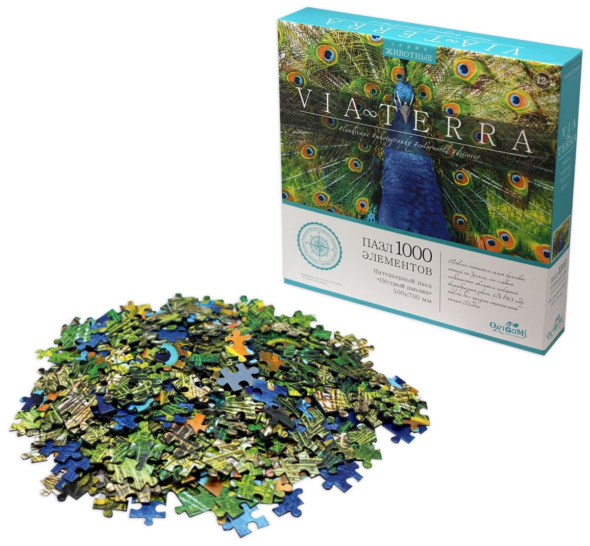 Via Terra. Пазл-1000 "Пёстрый павлин" (05236) ОРИГАМИ