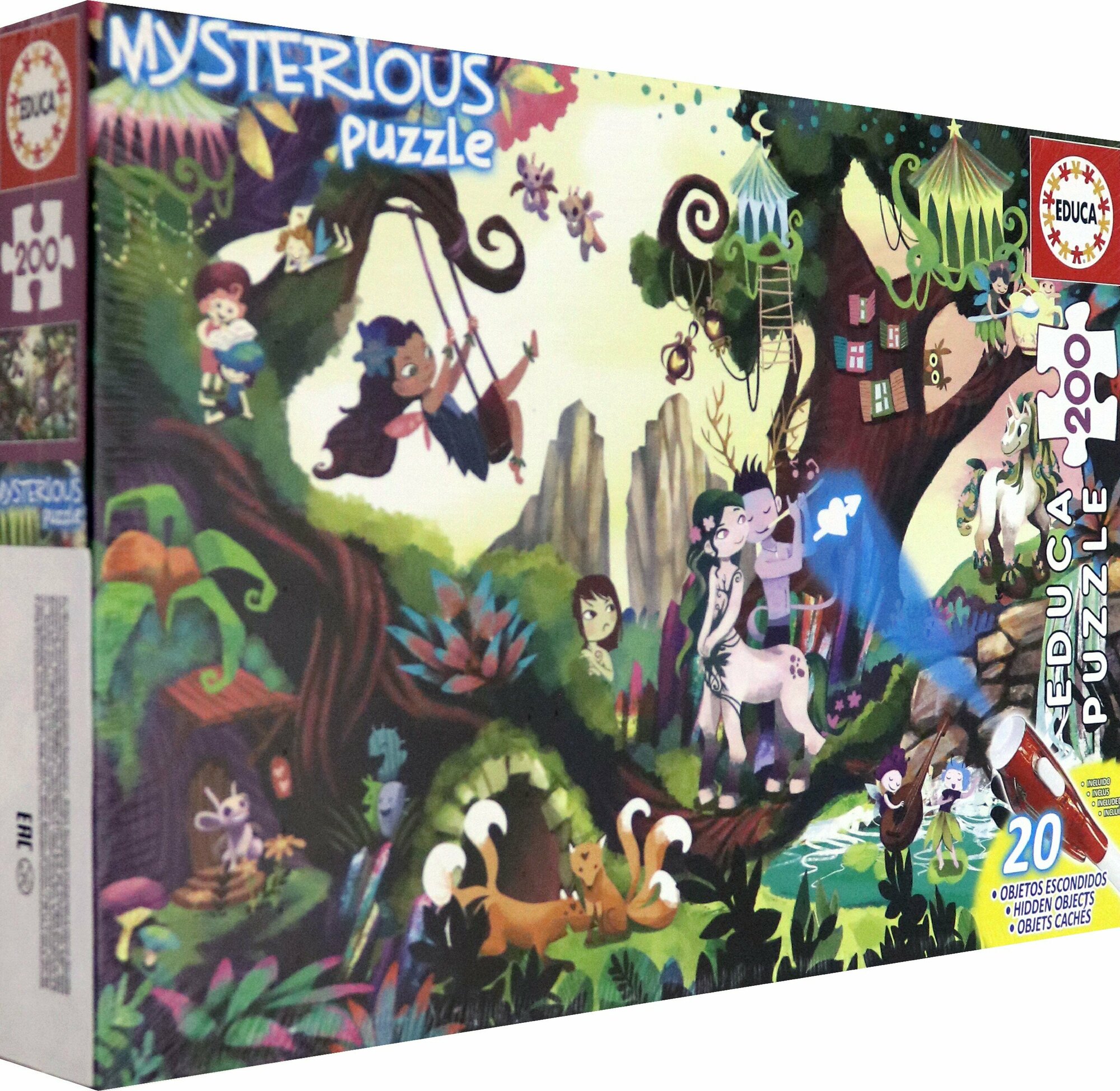 В комплекте: пазл из 200 деталей, невидимый чернильный маркер с УФ-светом, брошюра с изображениями скрытых элементов.