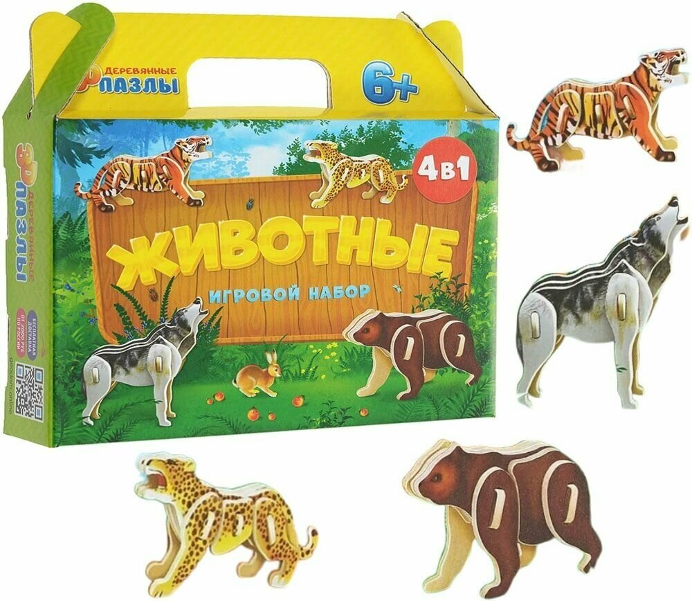 Животные. Набор игровой 4 в 1 (тигр медведь волк леопард) Геодом